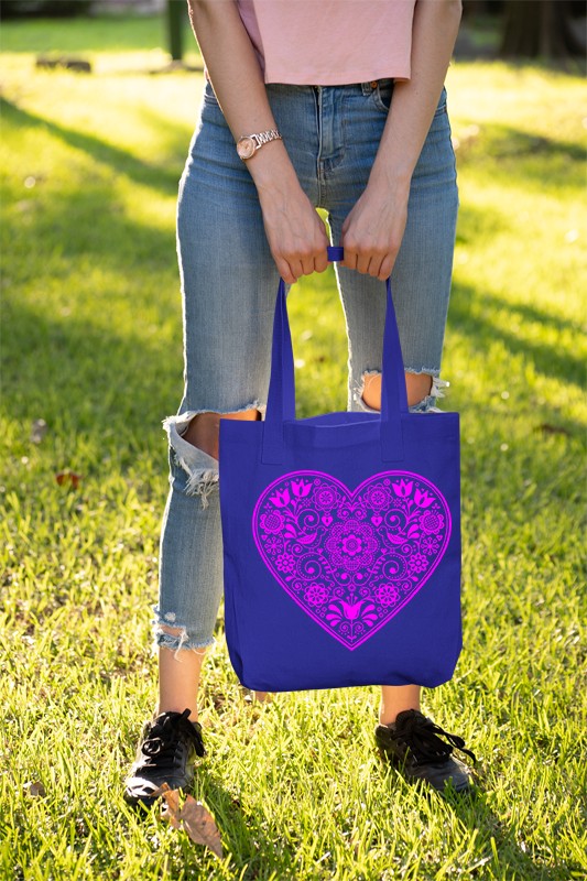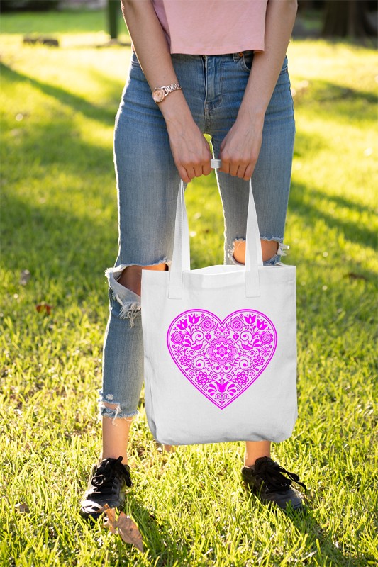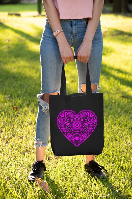 Úvod » Peňaženky a tašky » Tašky s potlačou » Bavlnená taška motív folklórne srdce ružové Čierna