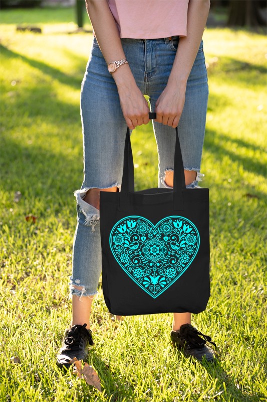 Úvod » Peňaženky a tašky » Tašky s potlačou » Bavlnená taška motív folklórne srdce zelené