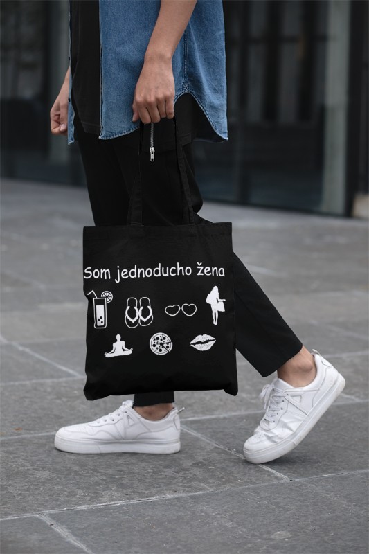 Úvod » Peňaženky a tašky » Tašky s potlačou » Bavlnená taška motív jednoducho žena2