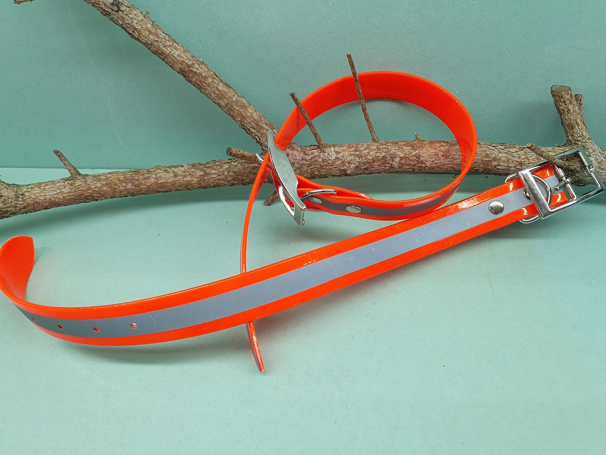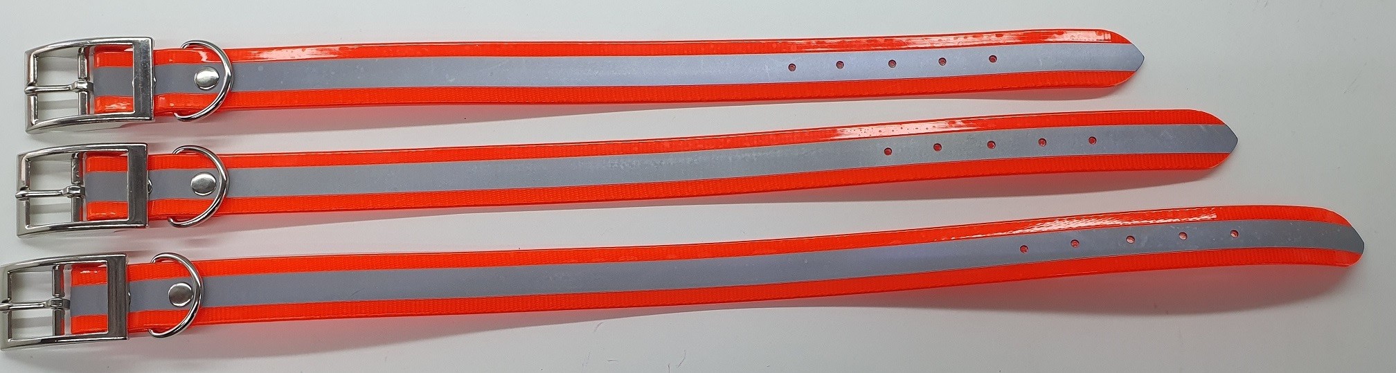 Obojok pre psa , obvod krku do 45, 50, 55 cm, šírka obojka: 2,5 cm, materiál: BioThane, oranžová s reflexným pásom 12 mm,