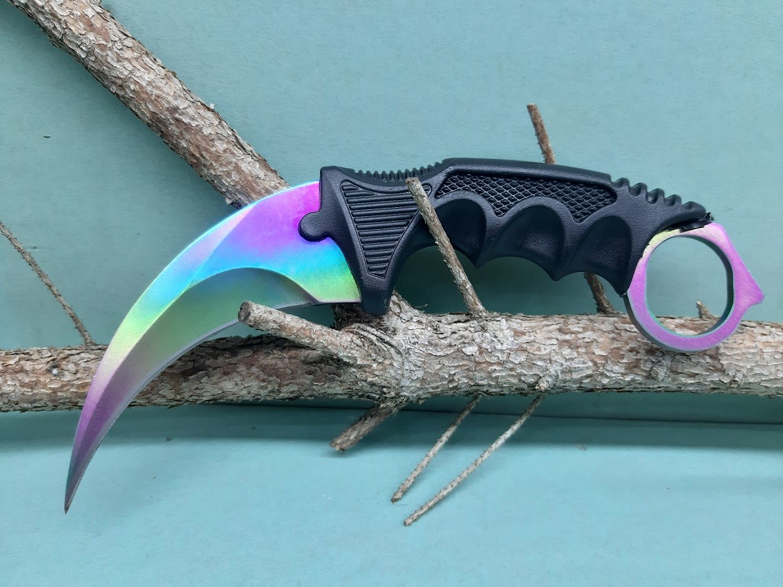 Úvod » Do prírody » Nože » Zatváracie nože » Karambity » Bojový obranný nôž karambit CS dúha +puzdro 19/9cm