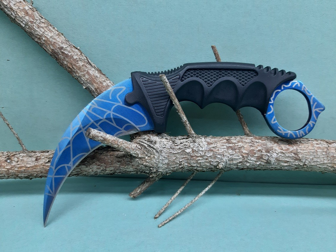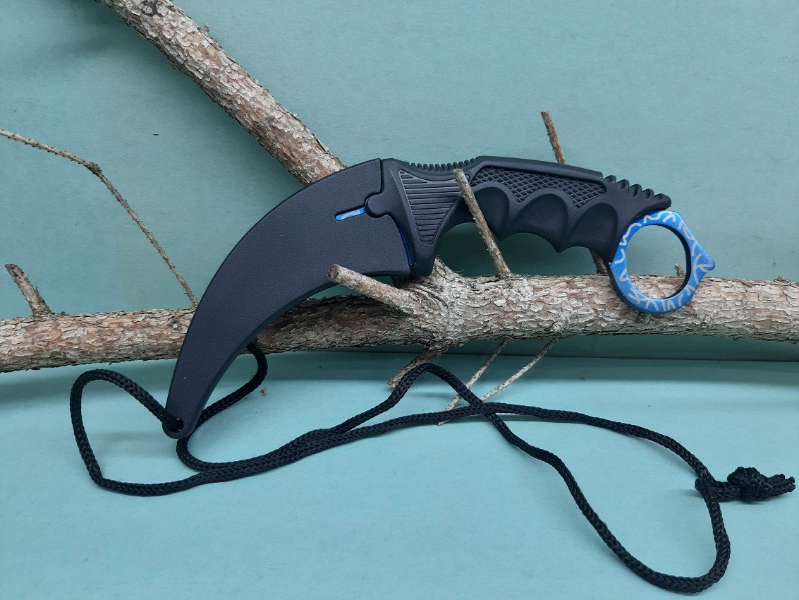 Úvod » Do prírody » Nože » Zatváracie nože » Karambity » Bojový obranný nôž karambit motív modrá pavučina +puzdro 19/9cm