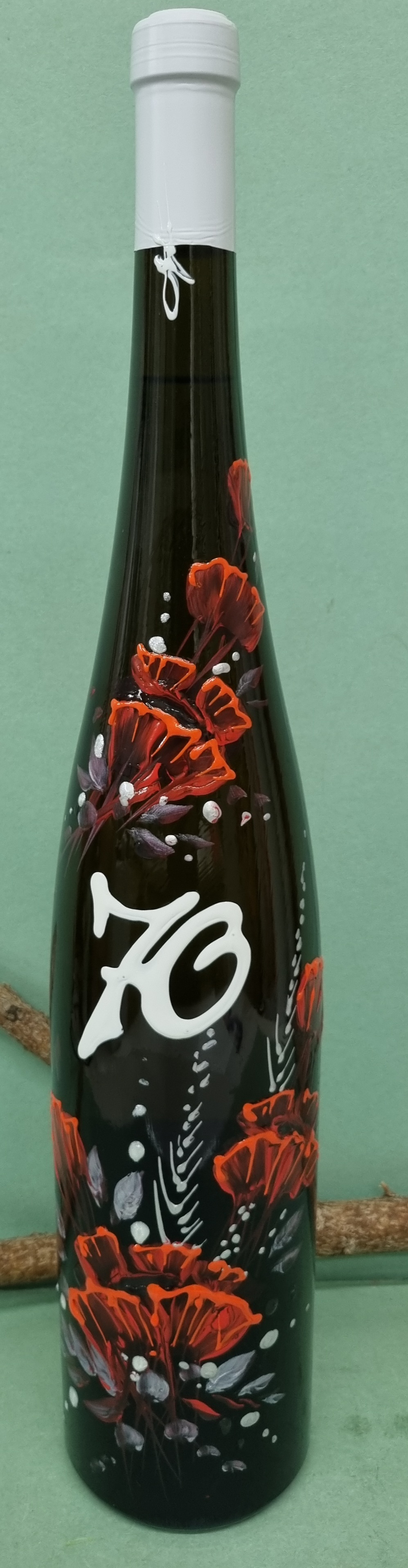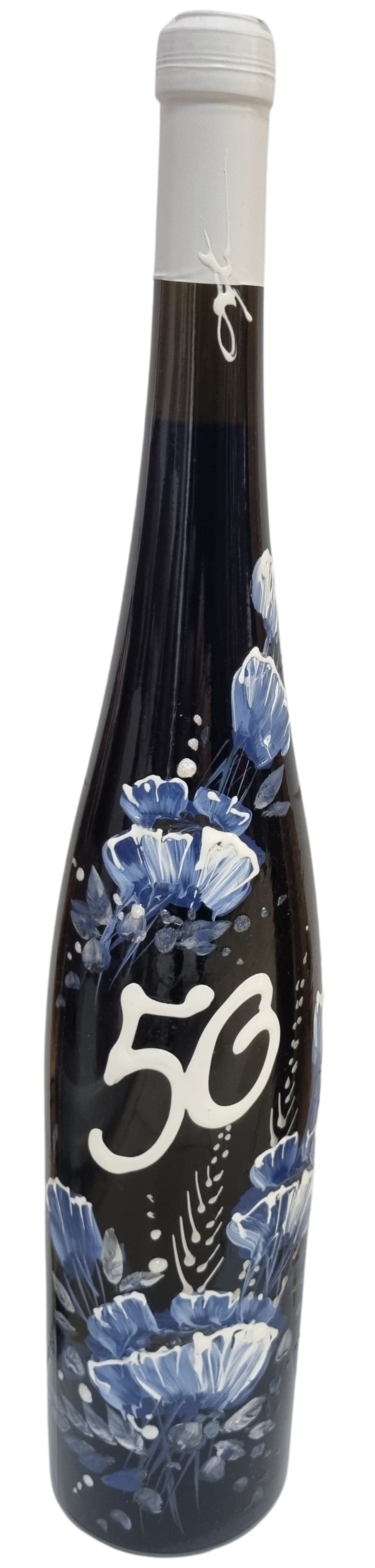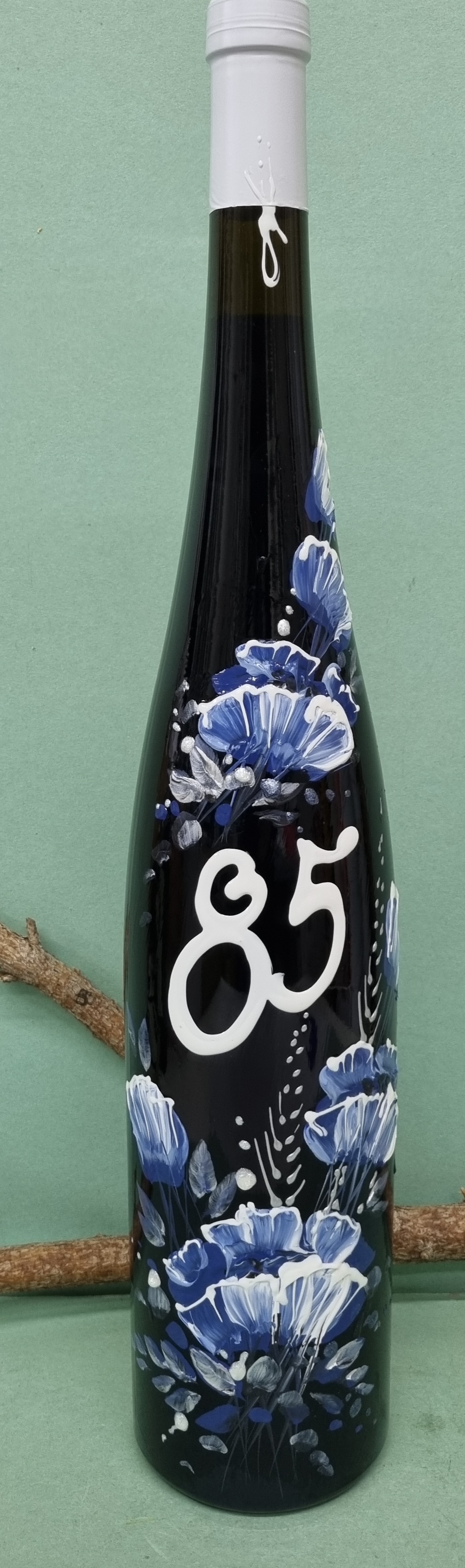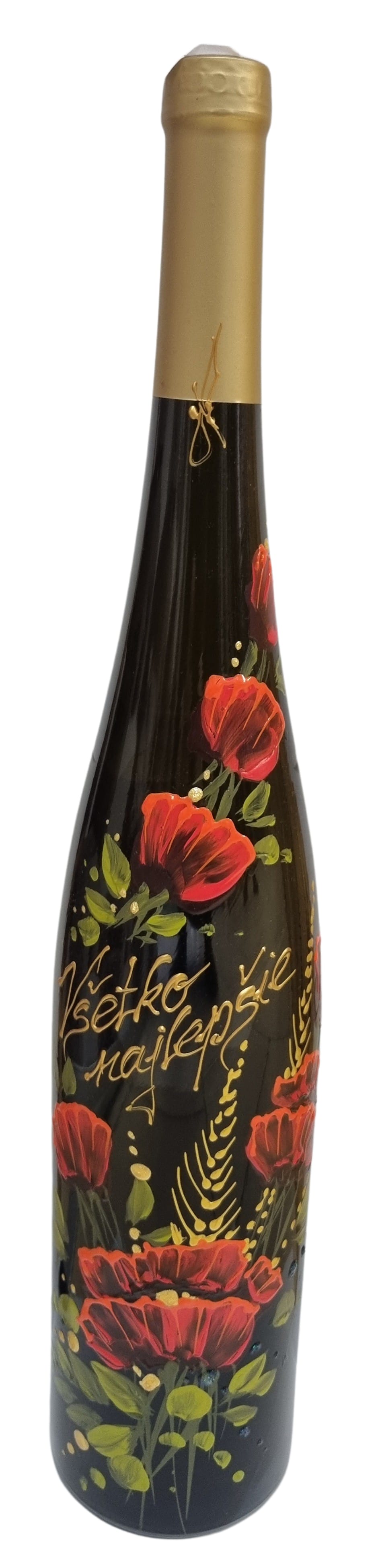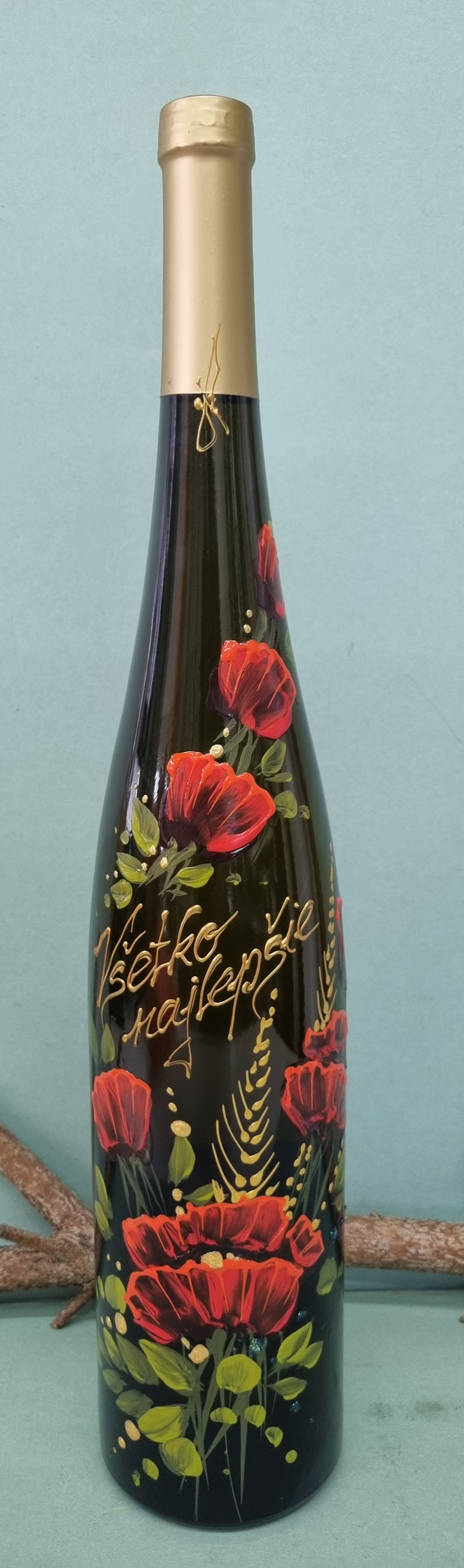 Ručne maľovaná fľaška s číslom, alebo venovaním. Obsah 1,5l červeného, alebo bieleho suchého vína.