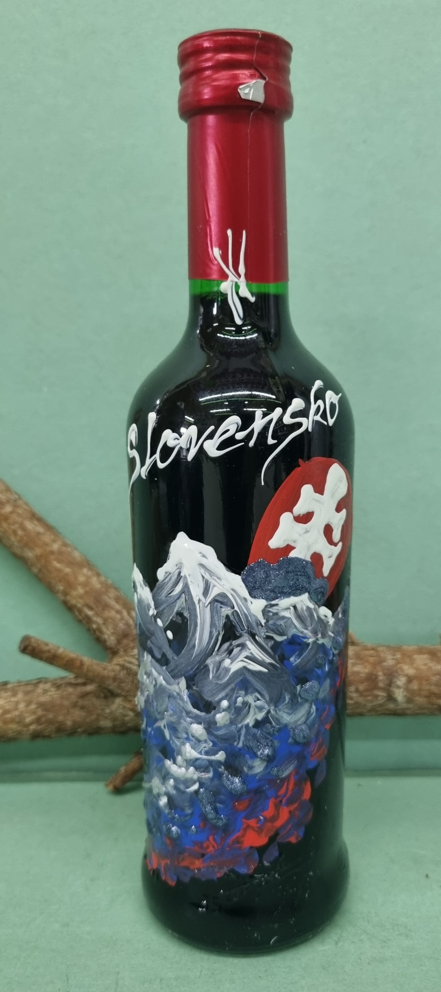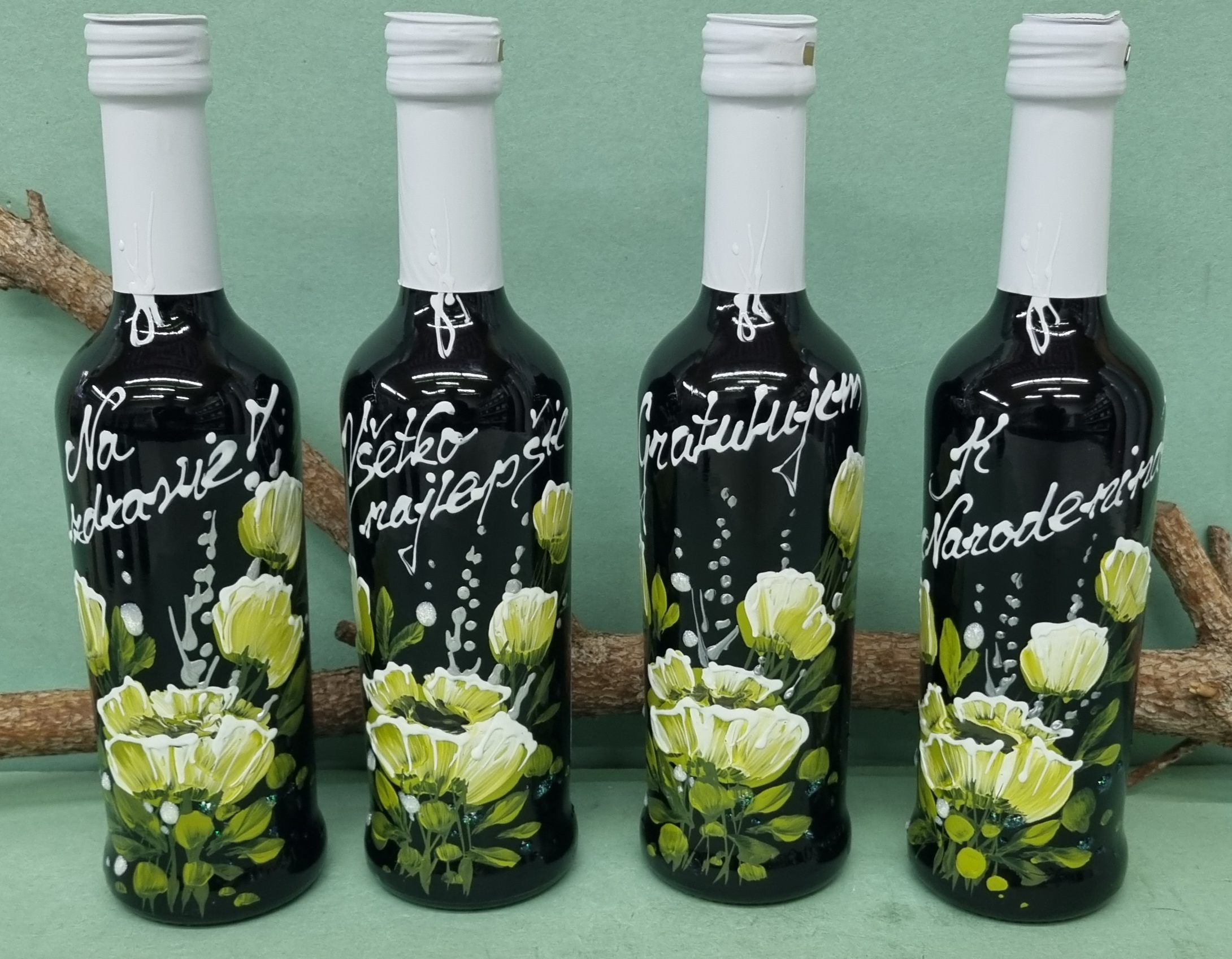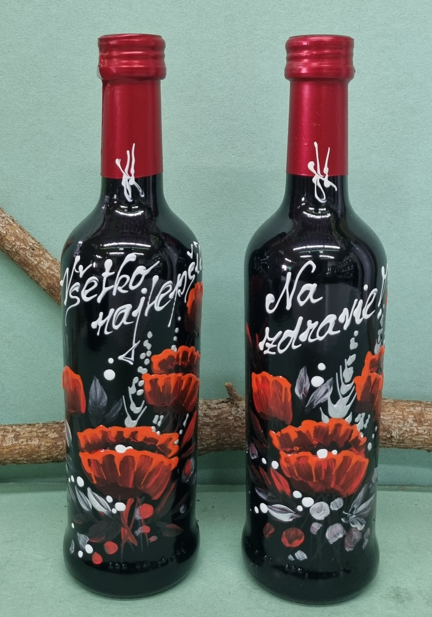 Ručne maľovaná fľaška s obsahom 250ml červeného, alebo bieleho suchého vína.