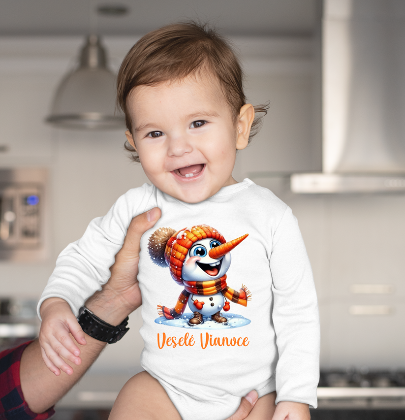 Úvod » Oblečenie » Detské » Body » Vianočné body » Detské body dlhý rukáv vianočný motív Snehuliak25
