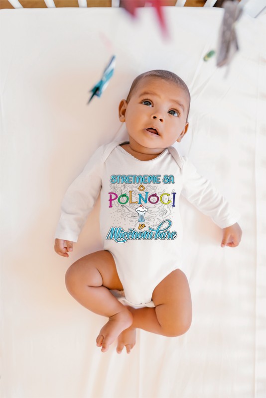 Úvod » Oblečenie » Detské » Body » Vtipné body » Detské body s dlhým rukávom s motívom Stretneme sa o polnoci v mliečnom bare
