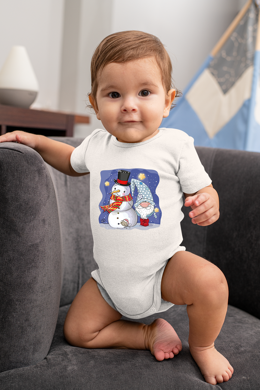 Úvod » Oblečenie » Vianočné oblečenie » Detské bory krátky rukáv s vianočným motívom Snehuliak Biela 18-24 mesiacov