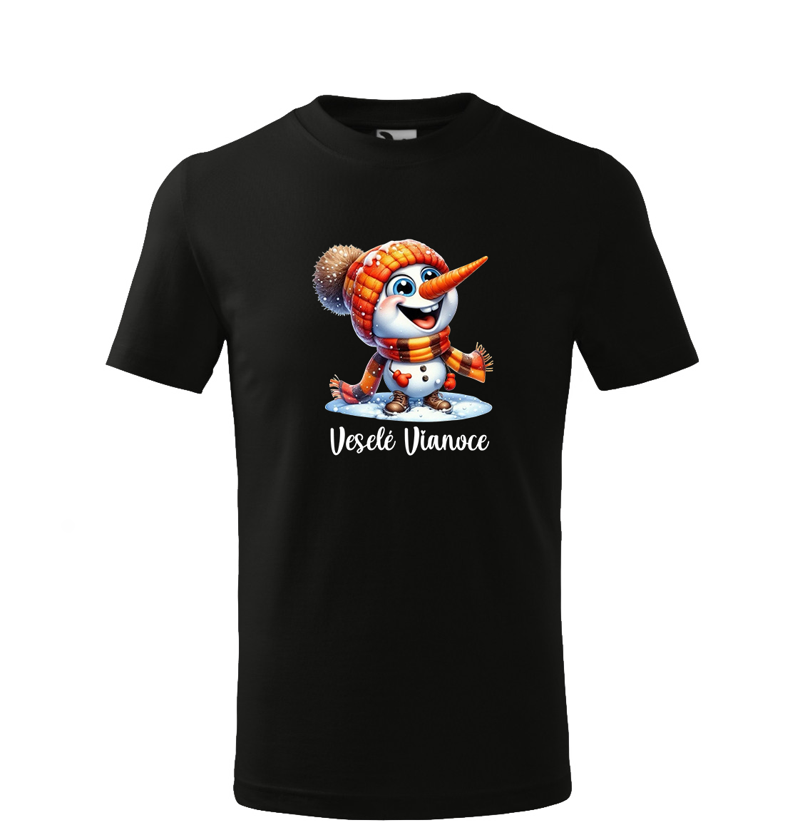 Tričko s  vianočným motívom Snehuliak. S hmotnosťou 160g a zložením z 100% bavlny je toto tričko ľahké, priedušné a pohodlné na nosenie, čo je dôležité pre aktívne deti.
