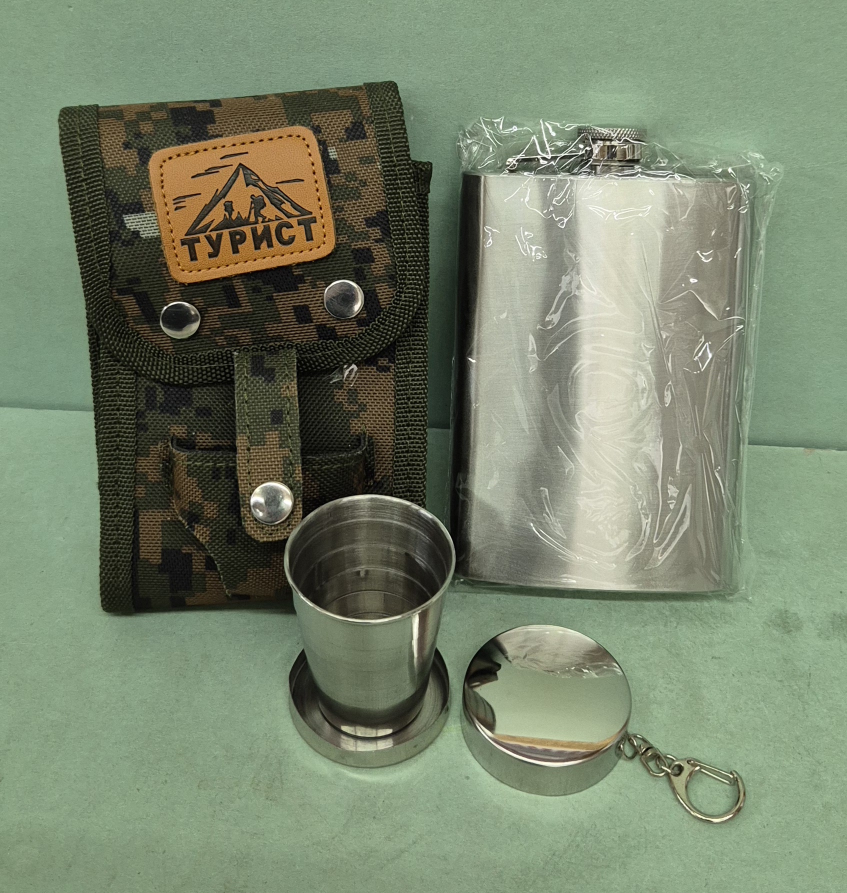 Fľaška s obsahom270ml, v textilnom maskáčovom púzdre. Vzadu na púzdre sa nachádza karabinka, môžete si ju tak pripevniť na opasok alebo ruksak. Súčasťou je aj nerezový skladací pohárik s obsahom 100ml. Pekný darček pre poľovníkov, rybárov aj turistov ako štýlový doplnok pre outdoorové dobrodružstvá.