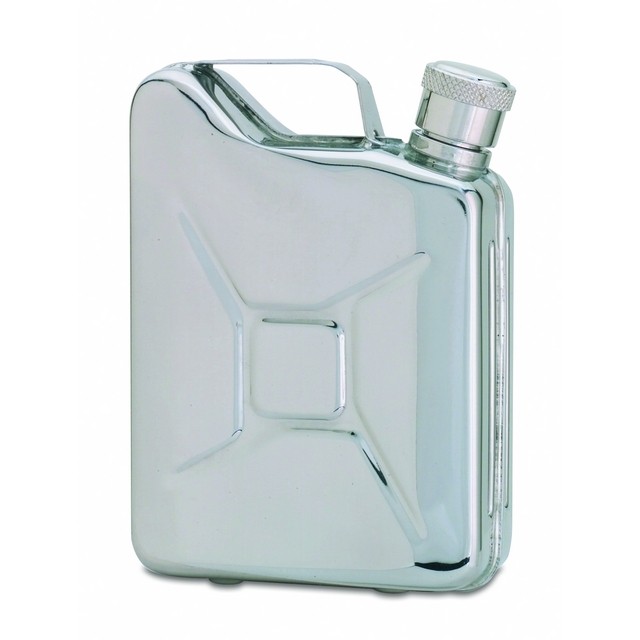 Netradičná nerezová ploskačka 1819 v tvare kanistra s obsahom 1,8 dcl a s pevným poistným uzáverom na krátkodobý prenos alkoholických aj nealko nápojov. Likérka má lesklý povrch. Likérka vhodná do prírody, kempovanie a pod. ale ako aj darčekový predmet.