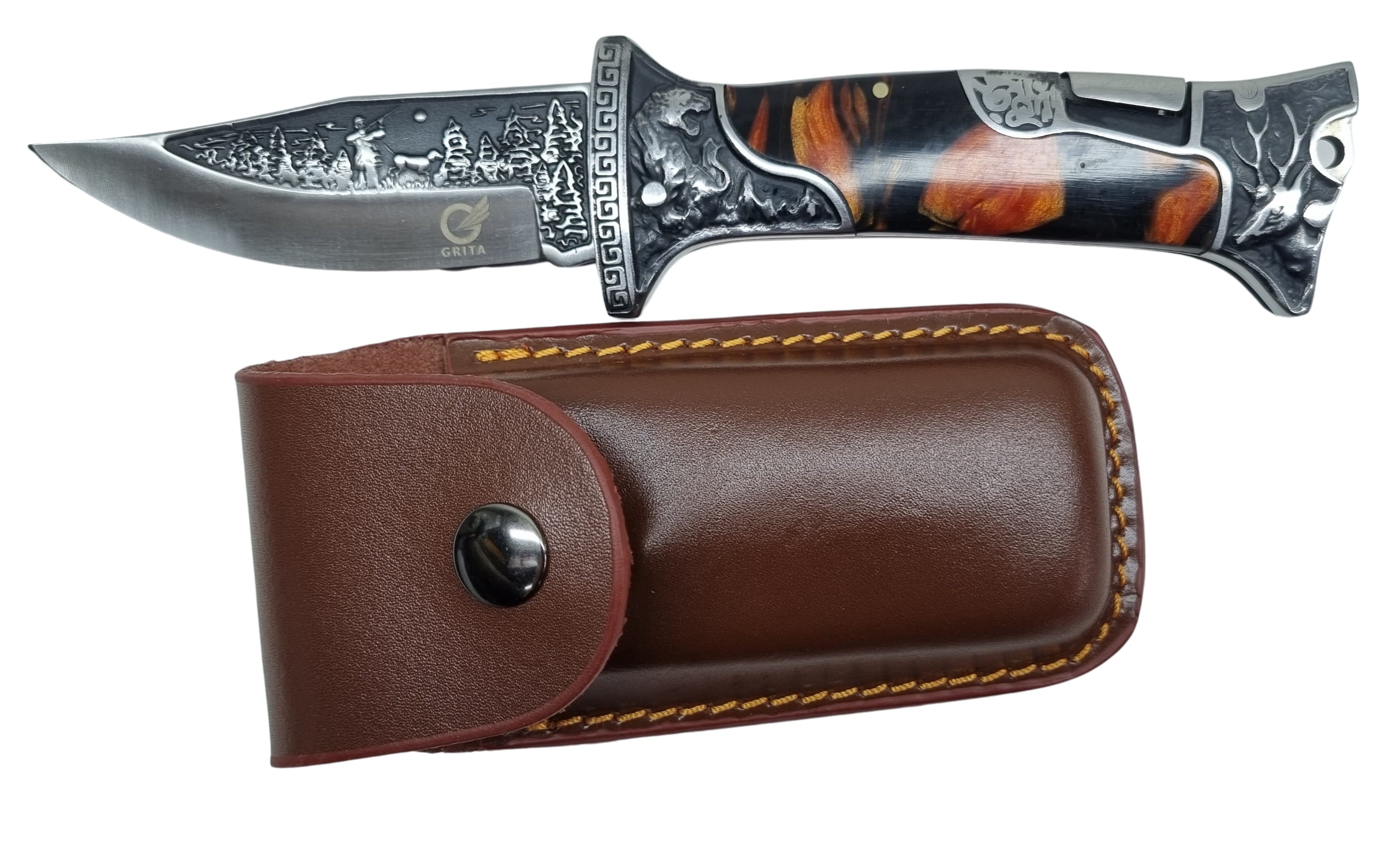 Úvod » Do prírody » Nože » Zatváracie nože » Ostatné nože » Grita zatvárací vreckový nôž motív príroda +puzdro, klip 23cm/10cm