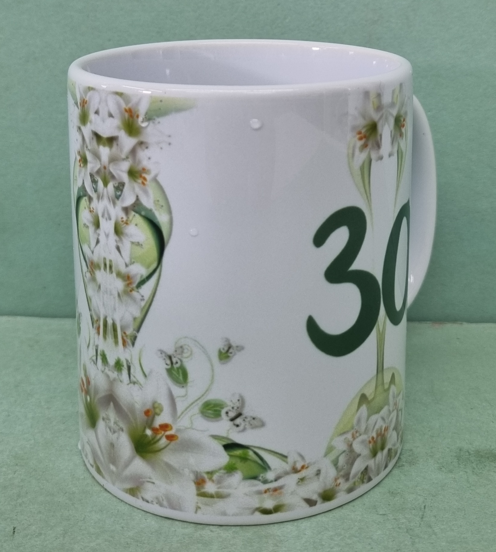 Úvod » Darčekové predmety » Hrnčeky ,Šálky-poháre » Hrnčeky , Šálky s potlačou » iné » Hrnček keramický s potlačou \"30\" s ľaliami 330ml