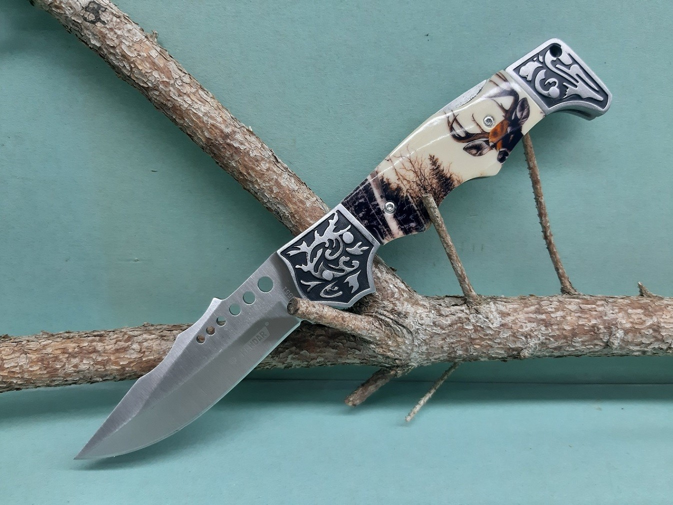 Úvod » Do prírody » Nože » Zatváracie nože » Ostatné nože » Kandar poľovnícky vreckový nôž motív jeleň +púzdro 21cm/9cm