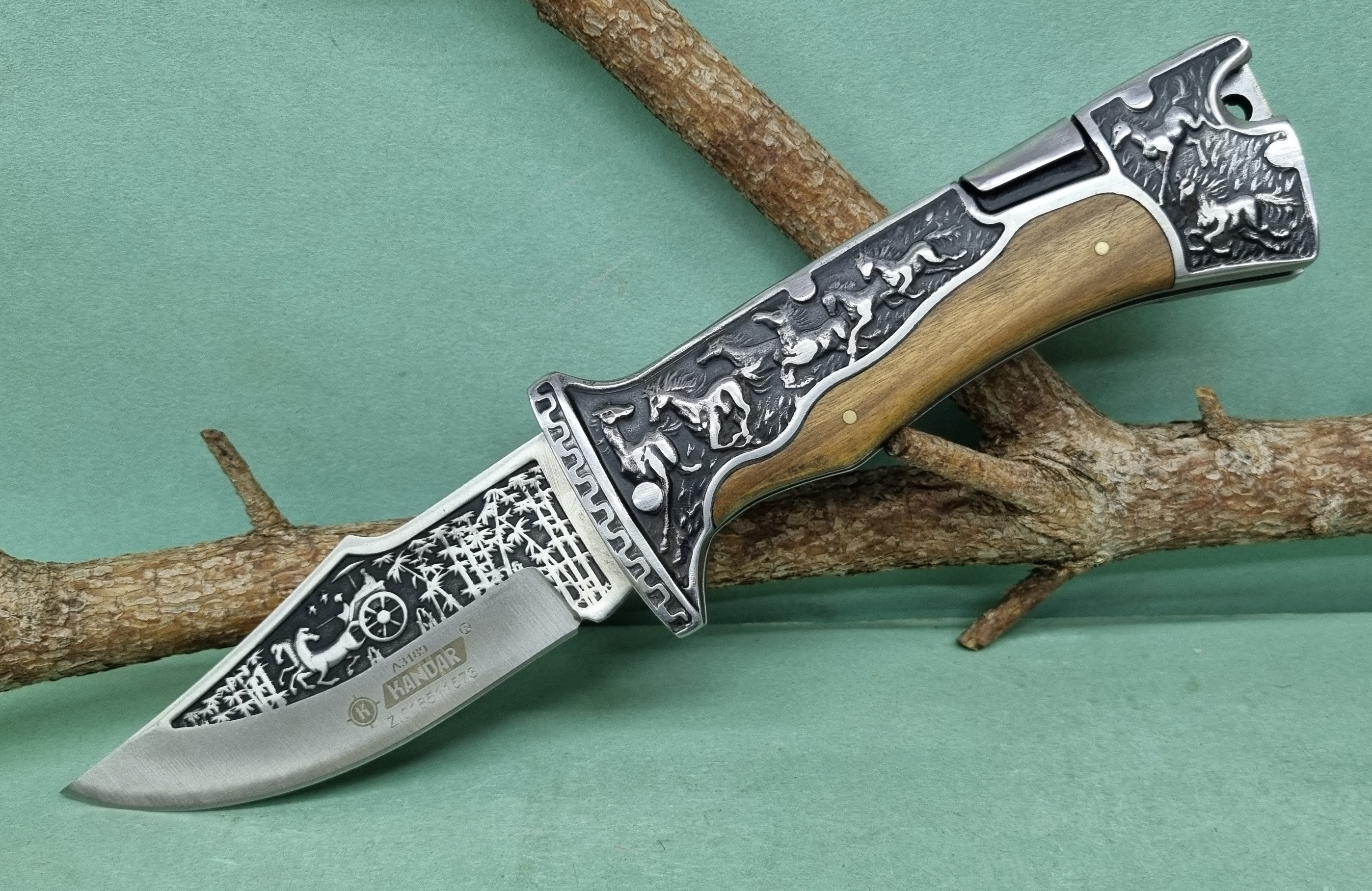 Úvod » Do prírody » Nože » Zatváracie nože » Ostatné nože » Kandar poľovnícky vreckový nôž motív kôň +klip 23cm/10cm