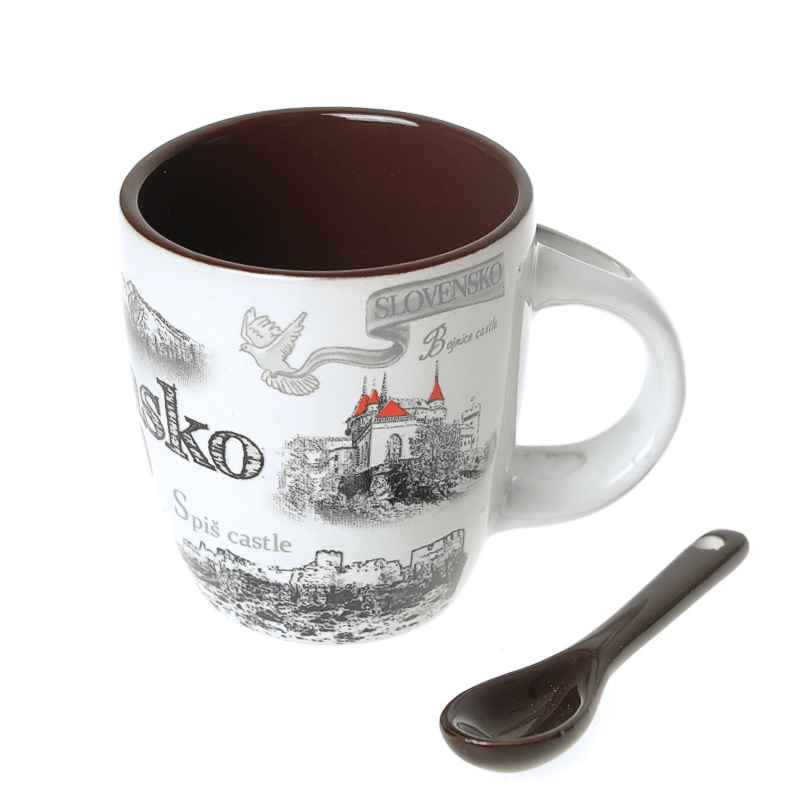 Úvod » Darčekové predmety » Hrnčeky ,Šálky-poháre » Keramická šálka na kávu Slovensko s lyžičkou 150ml