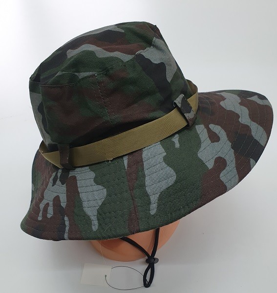 Letný klobúk, zelený, maskáč, univerzálna veľkosť, materiál 100% PES, šnúrka na zatiahnutie pod bradou a po stranách dva nity pre vypnutie. Klobúk vhodný na leto do prírody, turistiku, pre rybárov, hubárov, ale aj na bežné nosenie.