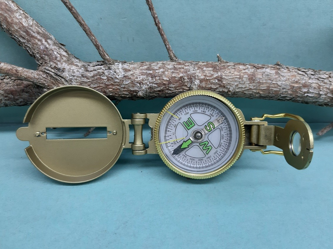 Kovový kompas, určený na orientáciu v teréne a výučbu v školách na určovanie svetových strán. Jeho kovová konštrukcia je odvodená z vojenského kompasu. Kotúčik so strelkou obsahuje 2 stupnice a je uložený v kvapaline. Je vybavený zväčšovacím sklom. Priemer kompasu je 5cm.