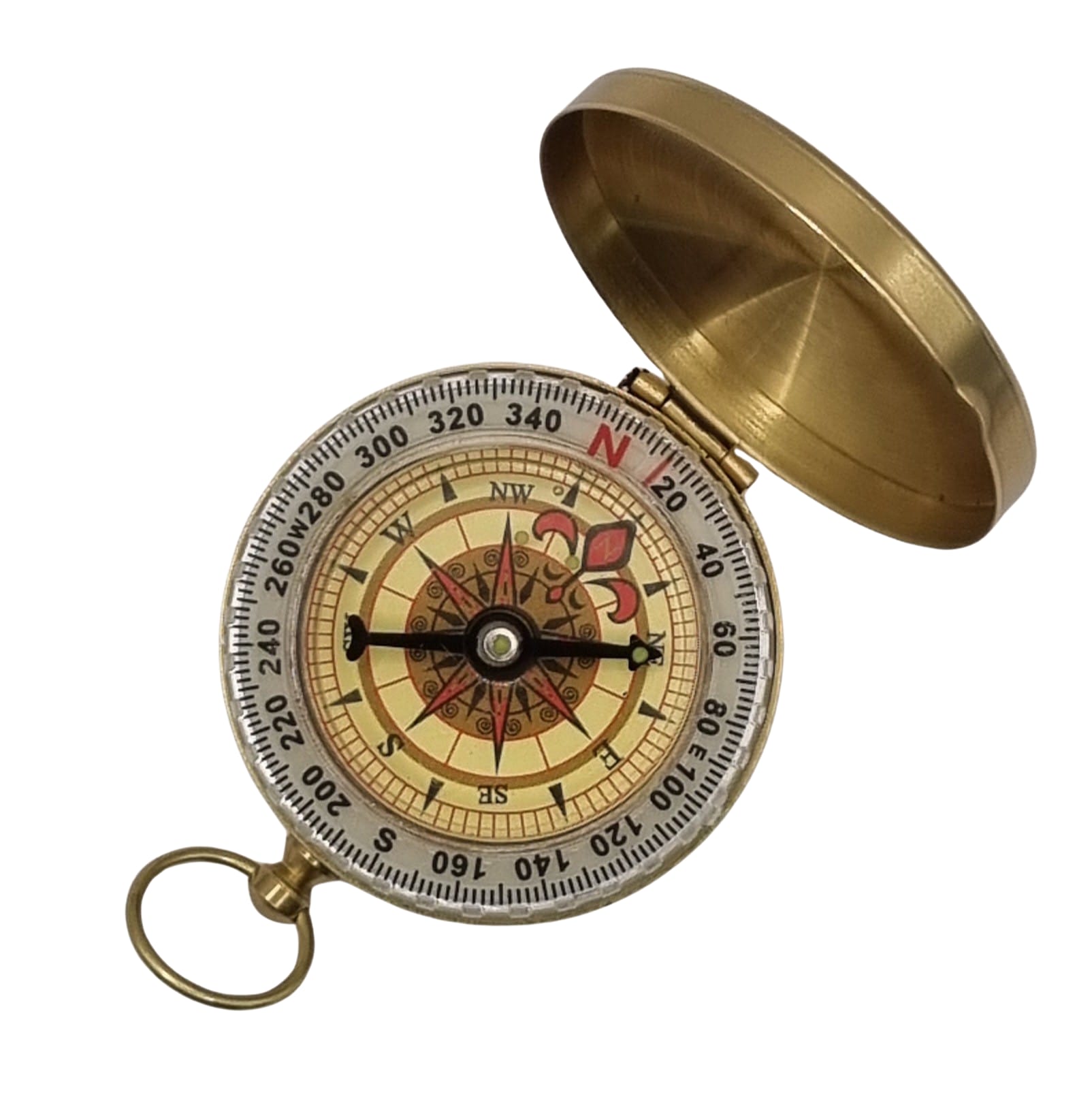 Kovový vreckový zatvárací kompas s priemerom 5cm. Slúži na orientáciu v teréne a výučbu v školách na určovanie svetových strán.