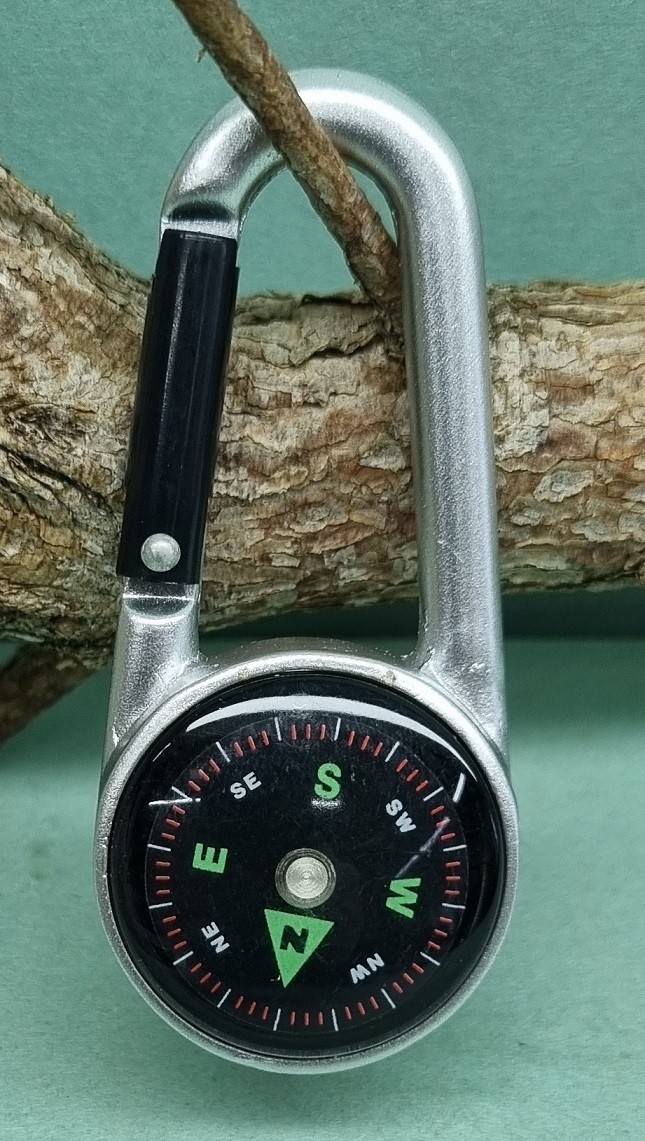 Praktický hliníkový kompas s karabínou striebornej farby. Slúži na orientáciu v teréne a výučbu v školách na určovanie svetových strán. Vďaka karabíne ho môžete mať vždy poruke. Rozmer 7/3 cm.