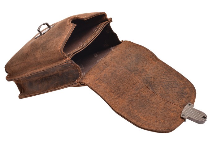 Praktické kožené puzdro na všetky potrebné veci ako je mobil, peňaženka alebo kľúče. Puzdro sa dá pohodlne zavesiť na opasok vďaka dvom putkám na zadnej strane. Puzdro obsahuje dve komory, ktoré sú uzavreté preklopom so sponou. Rozmery:17x11,5x7cm.
