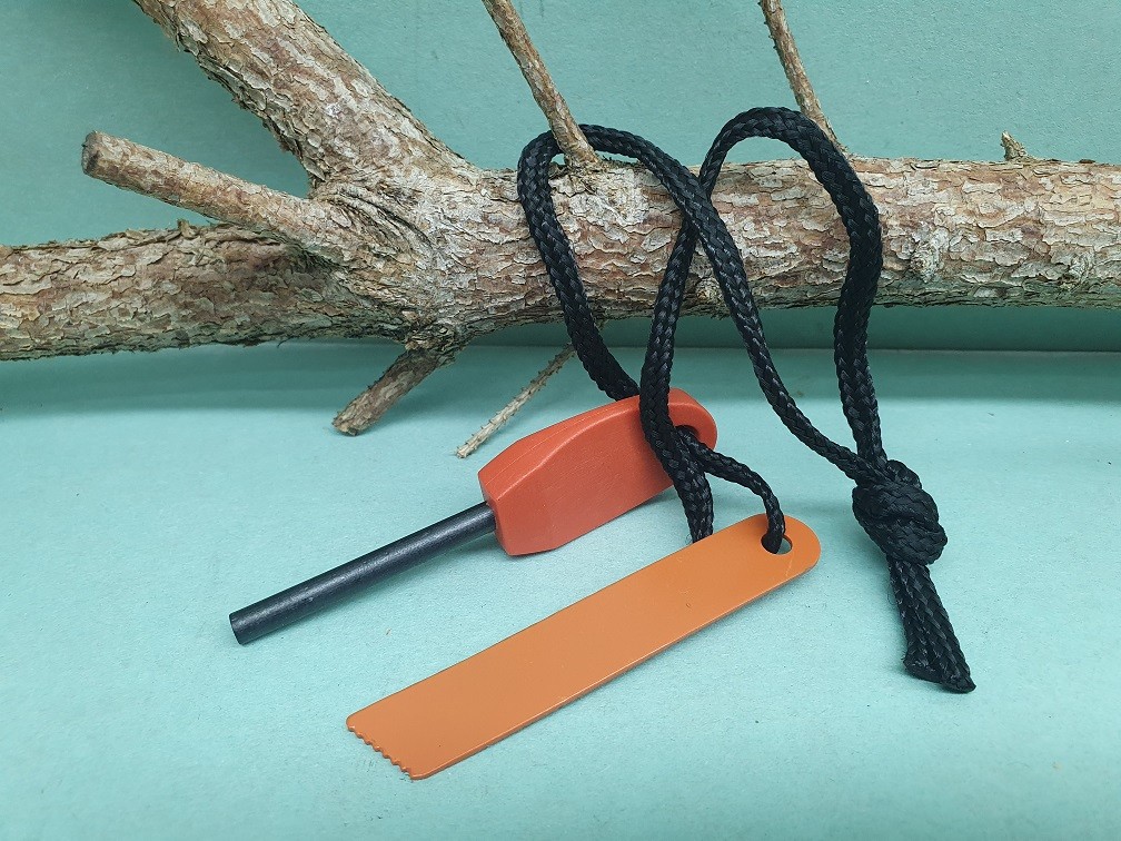 Malé kresadlo v oranžovom prevedení. Na šnúrke je zavesená magnéziová tyčinka a škrtadlo, s ktorým sa vytvárajú iskry. Kresadlo zapáli oheň v akomkoľvek počasí a nadmorskej výške. Vďaka svojej spoľahlivosti sa kresadlo stalo obľúbeným medzi outdoorovými nadšencami.