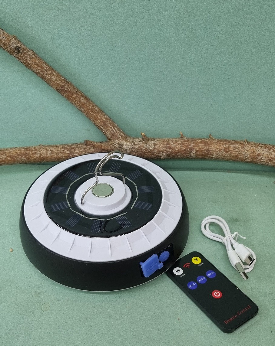 Kvalitné pracovné LED svetlo. Jednoduchá manipulácia a dosvit až 38m. Doba svietenia cca 8 hodín. Celá konštrukcia je z ABS plastu. Nabíja sa USB aj slnečným žiarením, svieti studeným aj teplým svetlom dvomi stupňami svietivosti - súčasťou je aj diaľkové zapínanie. Uchytí sa pripevneným háčikom, ale dá sa pripevniť aj magnetom, ktorý je zabudovaný pod hákom. Priemer 17cm.Kvalitné pracovné LED svetlo je skvelým pomocníkom pri akomkoľvek nedostatku svetla.