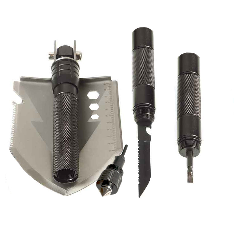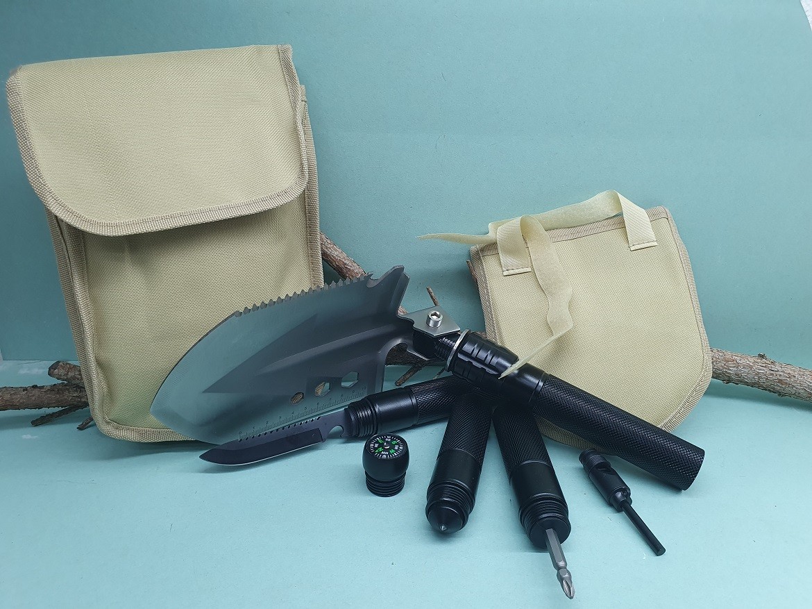 Viacúčelovú vonkajšiu skladaciu lopatku ocení nielen každý záhradník. Lopatka je nástroj, ktorý nesmie chýbať v žiadnej domácnosti. Vďaka svojim vlastnostiam je vhodná pre trampov, militaristov, hľadačov pokladov, milovníkov outdoorových aktivít a ďalších. Rukoväť má praktické drážky pre lepšie a pohodlnejšie uchopenie a množstvo zaujímavých funkcií. Lopatka multifunkčná s pohyblivou rukoväťou, kovová pracovná časť , praktické púzdro. Obsahuje nôž, kompas, kresadlo, šróbovák a hrot na rozbíjanie skla.