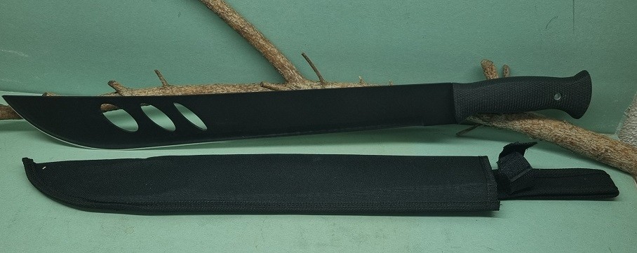 Kvalitná mačeta s nerezovou čepeľou potiahnutou čiernym teflónom. Na zavesenie mačety poslúži otvor na čepeli. Na spodnej strane gumenej rukoväte sa nachádza dierka na prevlečenie šnúrky. Súčasťou je čierne textilné puzdro s možnosťou uchytenia na opasok. Tovar je určený iba osobám starším ako 18 rokov!