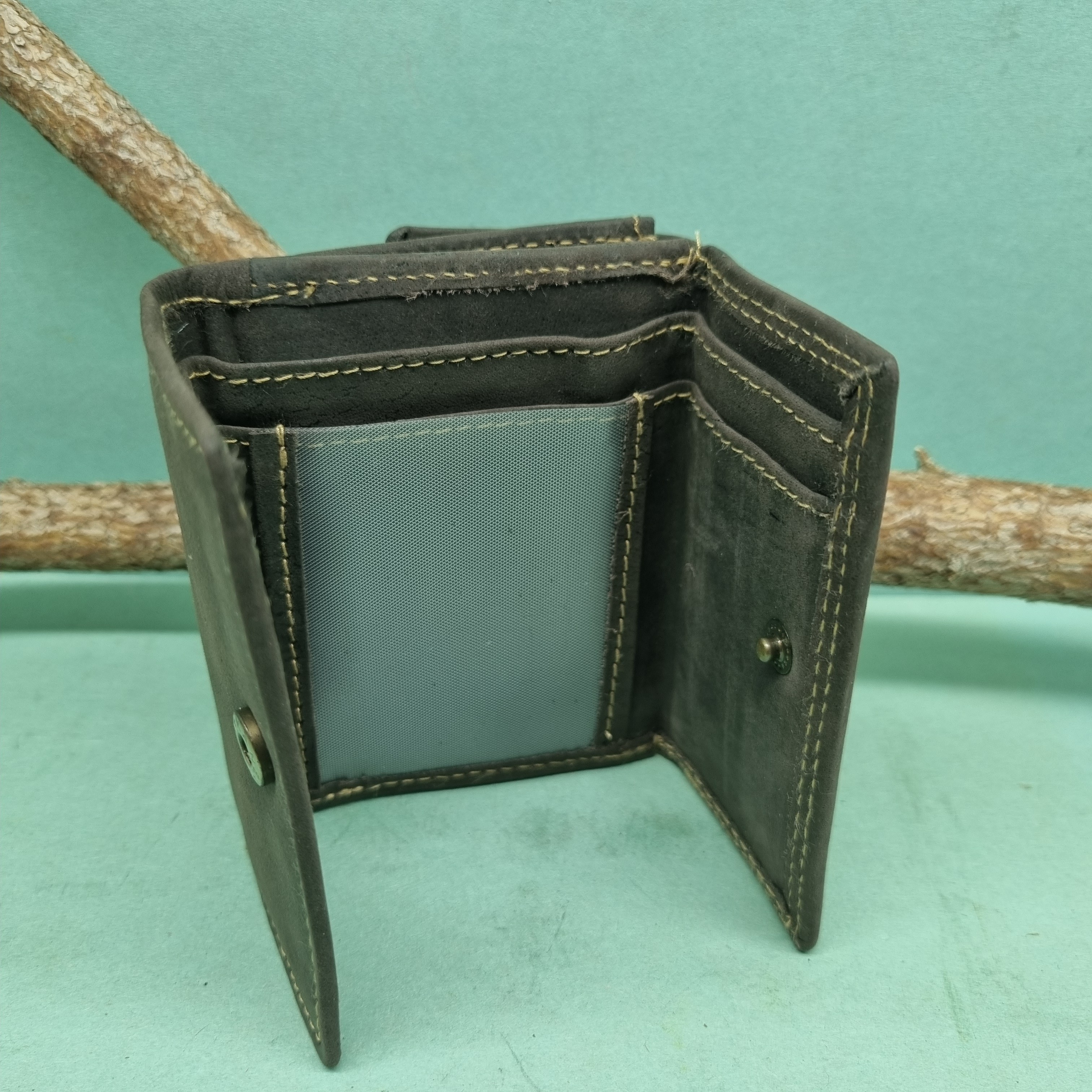 Malá kožená peňaženka má 2 priehradky na karty, 1 priehľadnú priehradku na fotky alebo doklady, 2 priehradky na bankovky a 1 veľký delený mincovník. Táto peňaženka je praktické riešenie pre situácie, pri ktorých nepotrebujete mať pri sebe veľkú peňaženku a vďaka svojmu mini rozmeru nezaberie takmer žiadne miesto. Rozmery: 10cm x 8,5cm x 2,5cm.