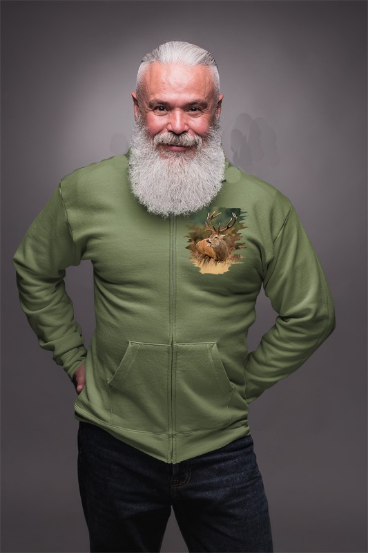 Úvod » Oblečenie » Pánske » Mikiny » Poľovnícka mikina » Mikina na zips s poľovníckym motívom Jeleň ručiaci FJ3