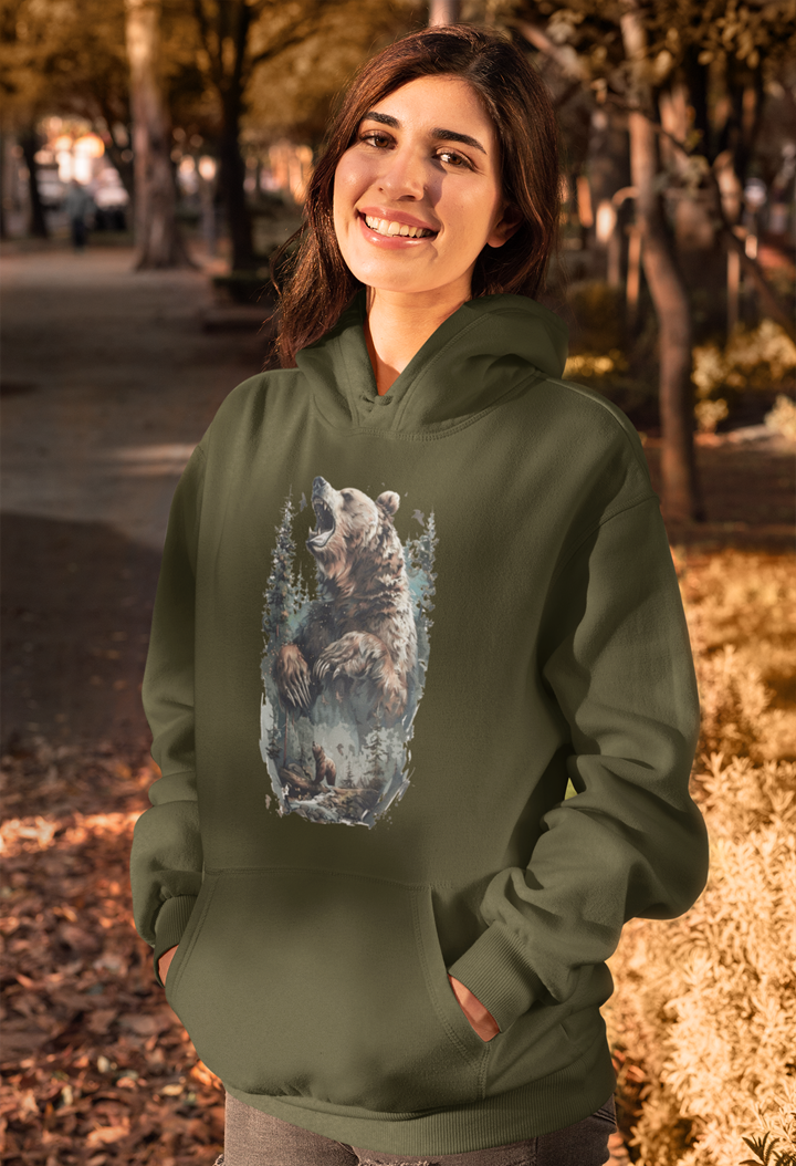 Úvod » Oblečenie » Dámske » Mikiny » Poľovnícka dámska » Mikina s kapucňou poľovnícky motív Medveď FM5