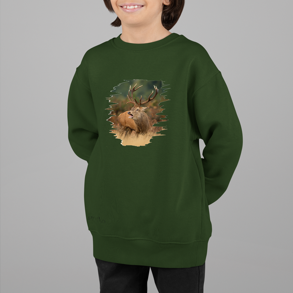 Klasická pohodlná detská mikina s poľovníckym motívom poteší každé dieťa ktoré má rado prírodu, zabezpečí prijemné nosenie v akomkoľvek počasí a je vhodná na bežné každodenné použitie a na všetky aktivity. Má rovný strih s bočnými švami, dvojité prešitie okolo rukávov, spodného lemu a priekrčníku, ktoré sú z rebrového úpletu z 5 % elastanu. Vyrobená je z kvalitnej , zdravotne nezávadnej výplnkovej pleteniny 65% bavlna a 35% polyester , gramáž 300g / m2, vnútorná strana počesaná.