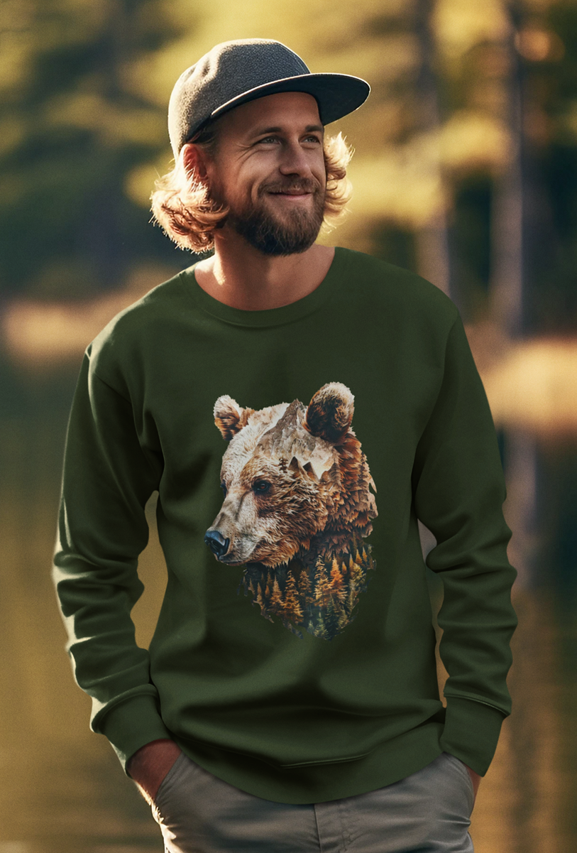 Štýlová, pohodlná a odolná mikina, ktorá poteší každého poľovníka, milovníka prírody či outdoorového nadšenca. V atraktívnej vojenskej (military) zelenej farbe s originálnym poľovníckym motívom Medveď, ktorý dotvára jedinečný charakter tohto kúsku. Mikina má rovný strih s bočnými švami pre pohodlné nosenie, manžety, dolný lem a priekrčník sú z rebrového úpletu 1:1 s prídavkom elastanu, vďaka čomu výborne sedia a držia tvar. Vnútorná počesaná strana zabezpečuje hrejivosť a príjemný pocit pri nosení aj počas chladných dní.