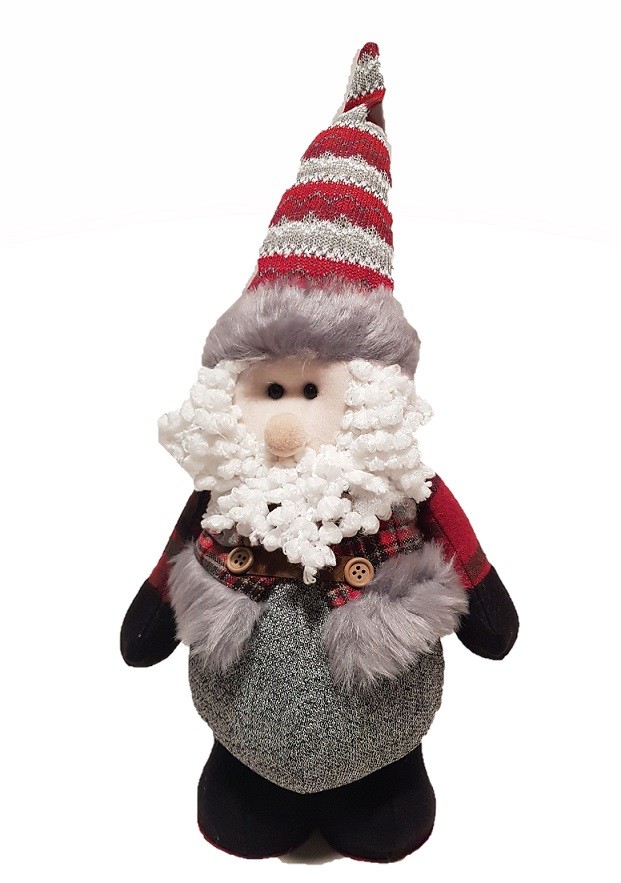 Veľmi pekná vianočná postavička Mikuláša s teleskopickými nohami. Dĺžka tela bez vysunutia nôh je 40 cm s vysunutím nôh 50 cm. Mikuláš má bavlnené oblečenie, ktoré mu dodáva autentický a tradičný vzhľad. Využijete ako dekoráciu alebo ako darček pre milovníka Vianoc.