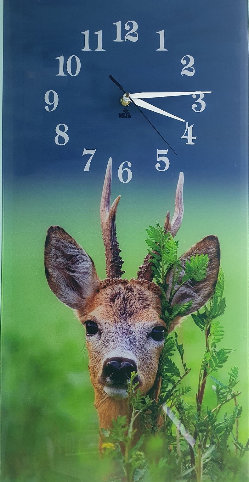 Nástenné hodiny s motívom srnec sú vyrobené z 3 mm plexiskla, fotografia je aplikovaná tlačou, hrany hodín sú upravené laserom, ktorý zaručuje vysoký lesk hrán plexiskla. Strojček v hodinách je na jednu batériu typu AA, ktorá nie je súčasťou balenia.