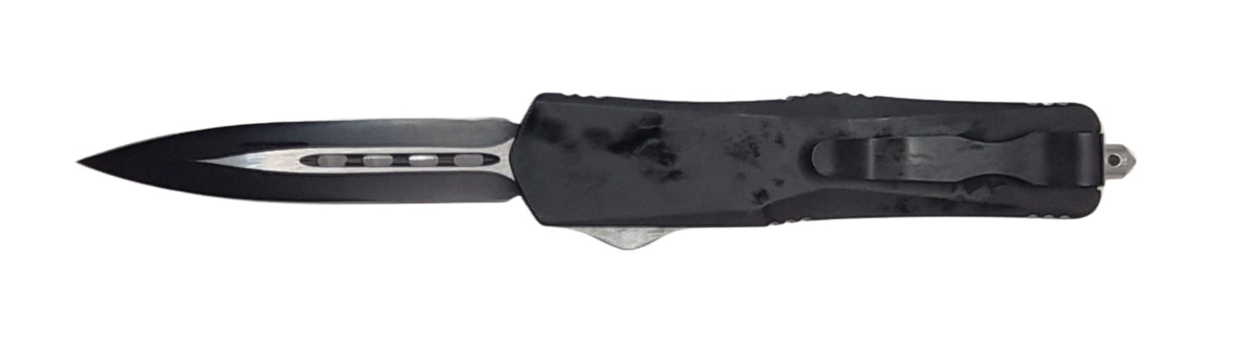 Vreckový vyskakovací nôž s nerezovou čepeľou o dĺžke 9,5cm a s kovovou rukoväťou. Nôž má obojstranné ostrie. Vzadu nožíka je klip na uchytenie, na konci noža je hrot na rozbíjanie skla. Čepeľ noža sa vysúva dopredu. Celková dĺžka noža je 23cm. Dodáva sa spolu s čiernym nylónovým púzdrom.
