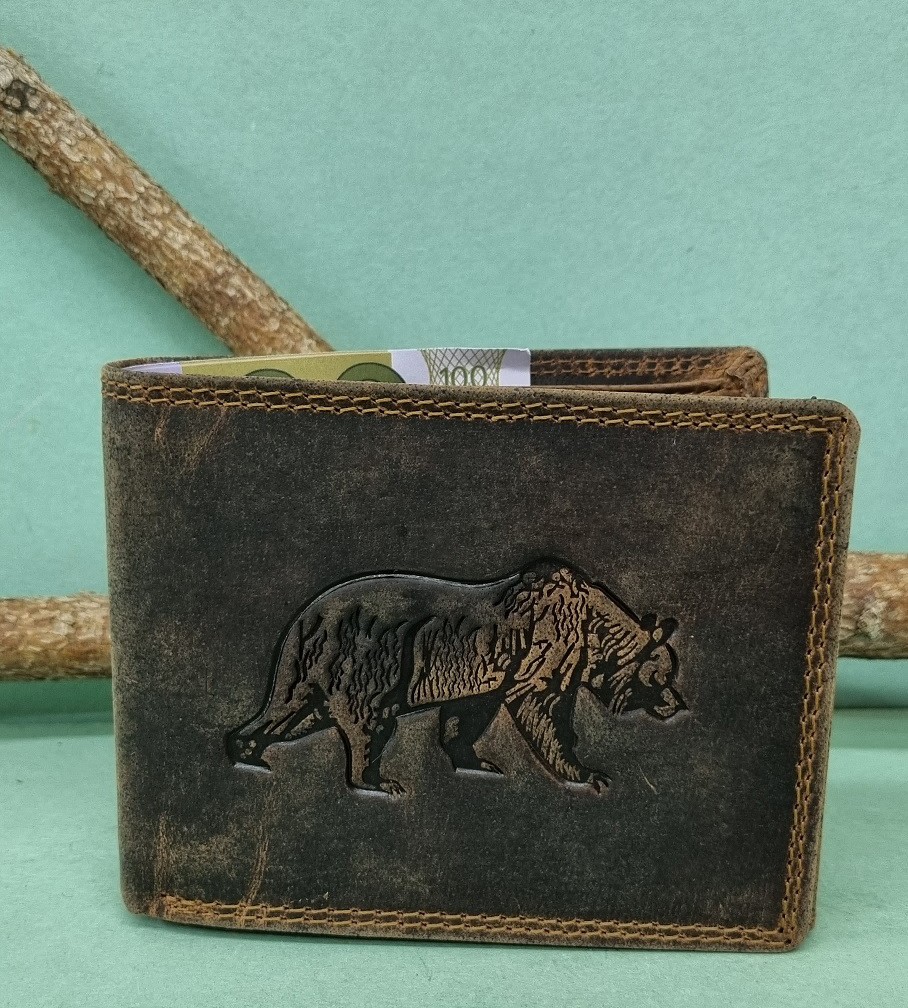Úvod » Peňaženky a tašky » Peňaženky a dokladovky » Pánska kožená peňaženka motív medveď celý