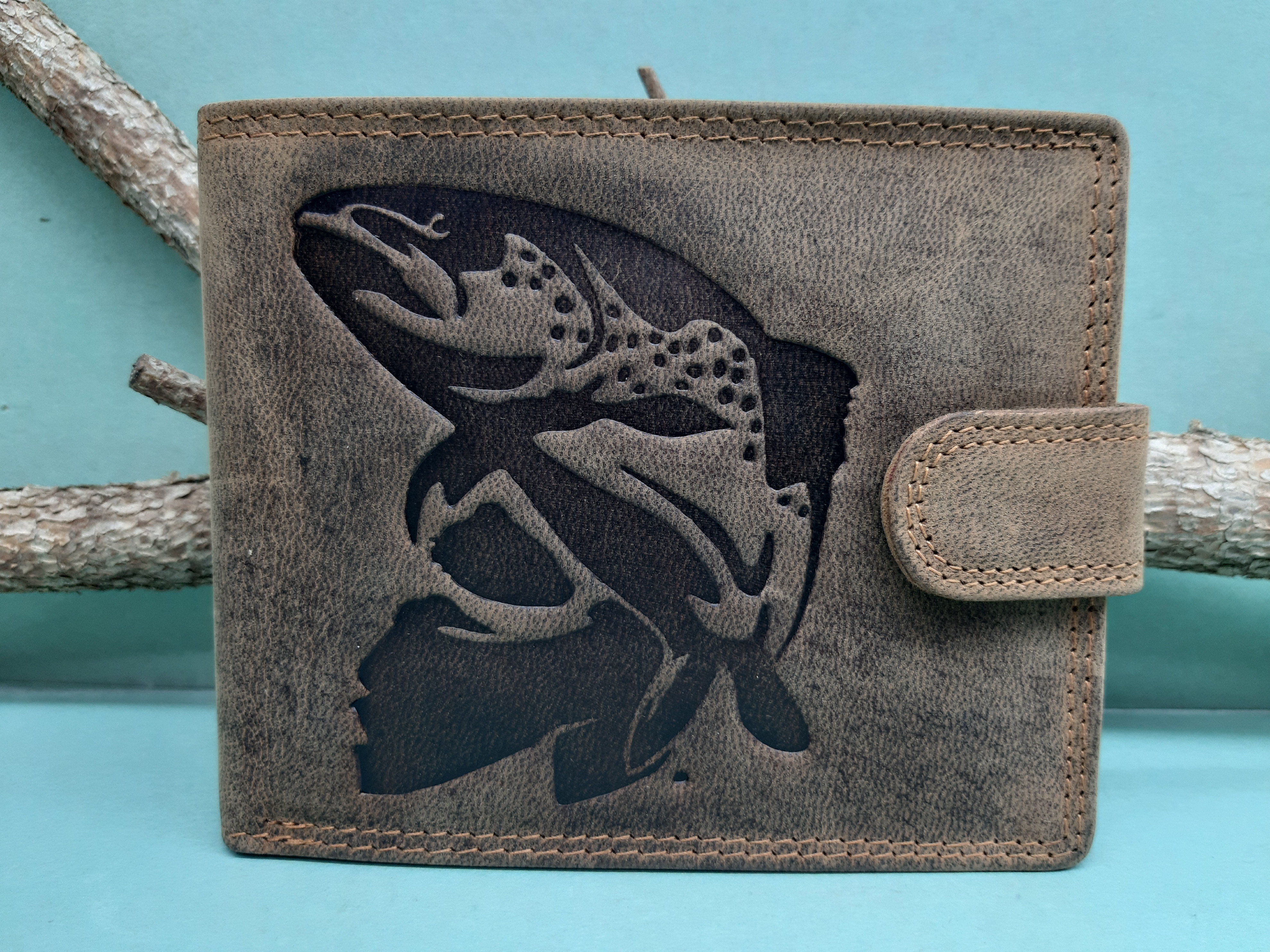 Úvod » Peňaženky a tašky » Peňaženky a dokladovky » Pánska kožená peňaženka motív pstruh +zapínanie