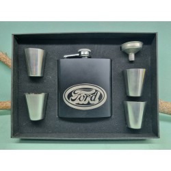 Darčeková sada obsahuje nerezovú ploskačku, 4 poháriky a lievik pre jednoduchšie nalievanie destilátu. Objem ploskačky s motívom značky Ford je 270ml. Komplet je balený v krásnom darčekovom balení. Sada je vhodná ako dekorácia alebo praktický darček hlavne pre automobilových nadšencov.