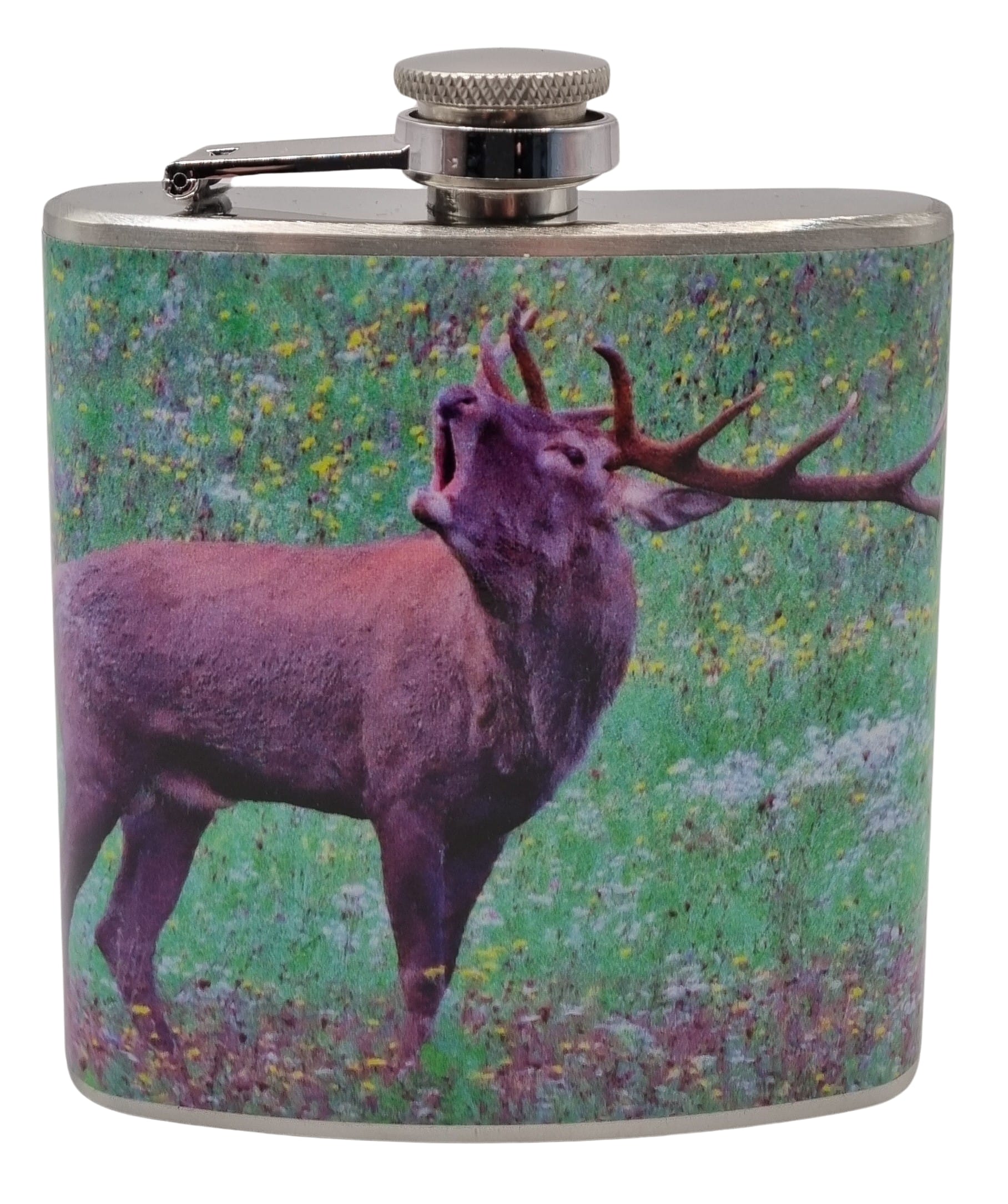 Nerezová ploskačka s poľovníckym motívom Jeleň. Pevný uzáver umožňuje krátkodobý prenos alkoholických nápojov v objeme 240, alebo 270 ml podľa vášho výberu. Ideálny darček pre milovníkov prírody.