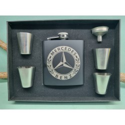 Úvod » Darčekové predmety » Ploskačky » Ploskačky s pohárikmi » Ploskačka Mercedes SADA 4 poháriky a lievik