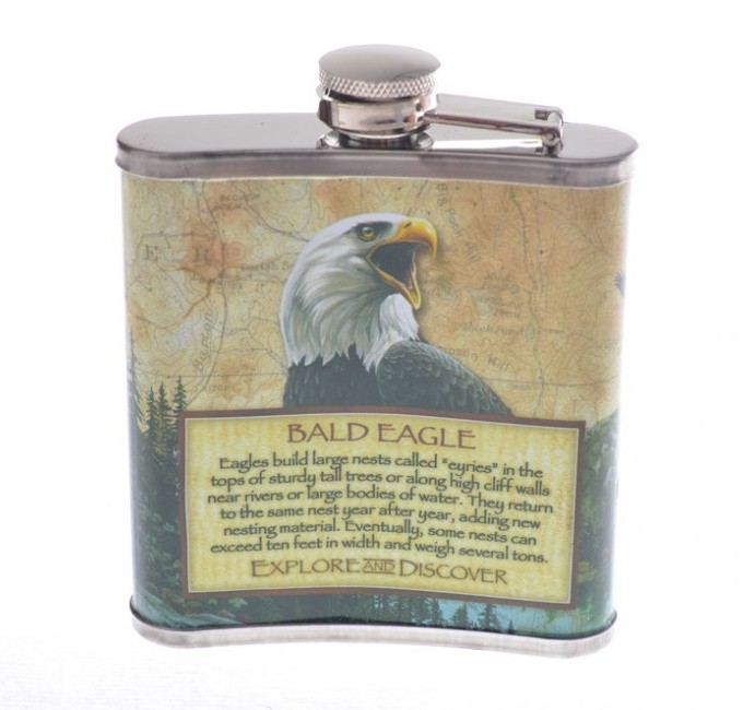 Nerezová ploskačka s objemom 210 ml. Pevný uzáver umožňuje krátkodobý prenos alkoholických nápojov. Ploskačka je na oboch stranách potlačená motívom orla a vzadu je stručný opis orla v angličtine. Ideálny darček pre milovníkov prírody a lesnej zvery, ktorí majú radi svoj obľúbený nápoj stále pri sebe.