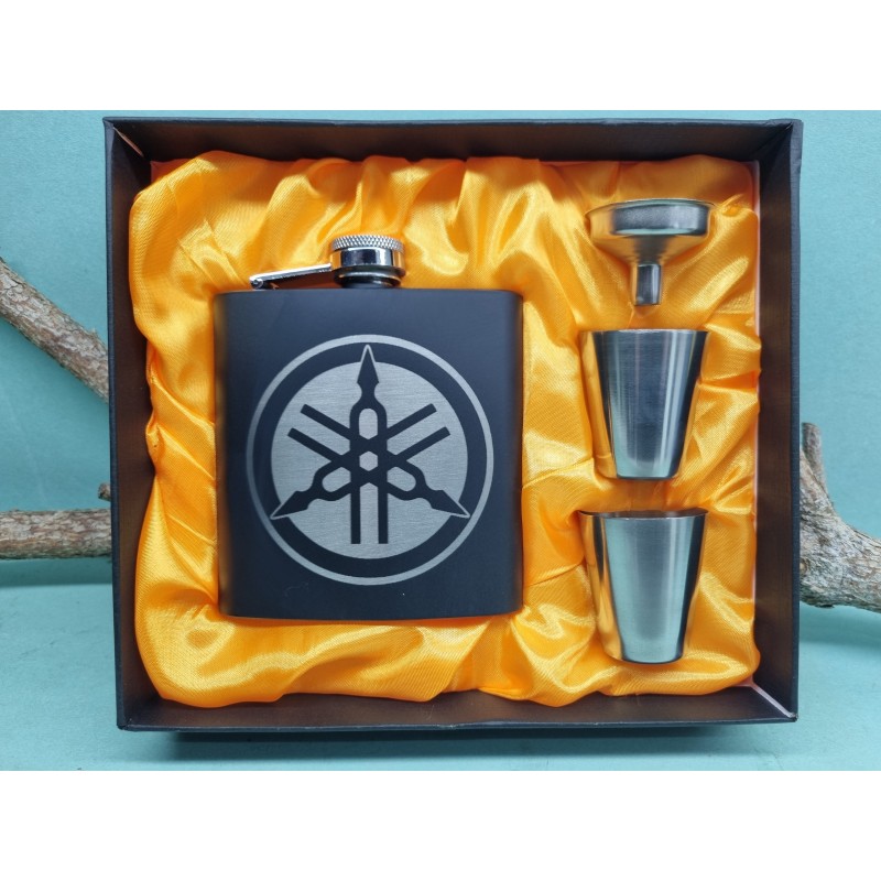 Darčeková sada obsahuje nerezovú ploskačku, 2 poháriky a lievik pre jednoduchšie nalievanie destilátu. Objem ploskačky s motívom značky Yamaha je 180ml. Komplet je balený v krásnom darčekovom balení. Sada je vhodná ako dekorácia alebo praktický darček hlavne pre automobilových nadšencov.