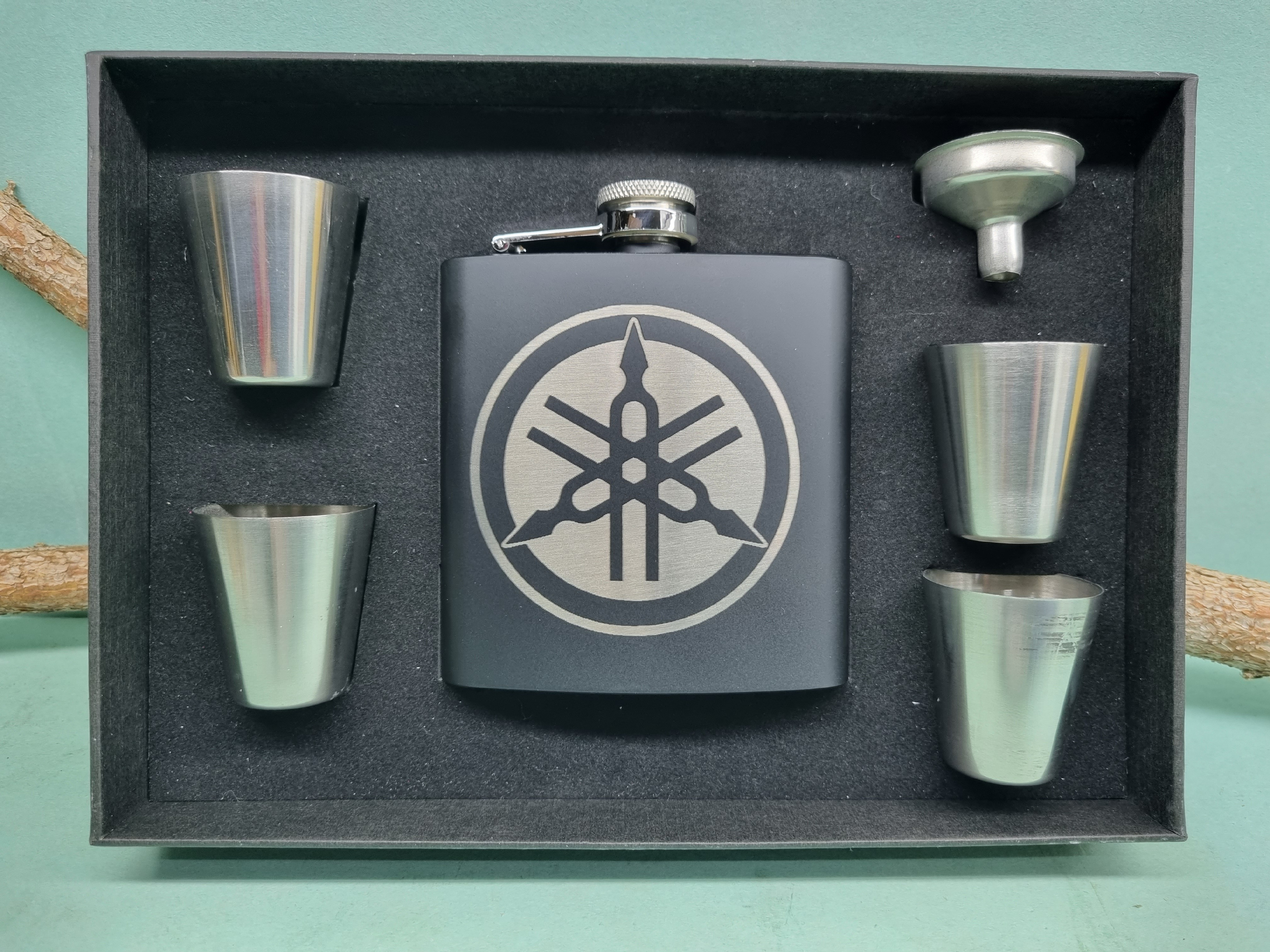 Úvod » Darčekové predmety » Ploskačky » Ploskačky s pohárikmi » Ploskačka Yamaha SADA 4 poháriky a lievik