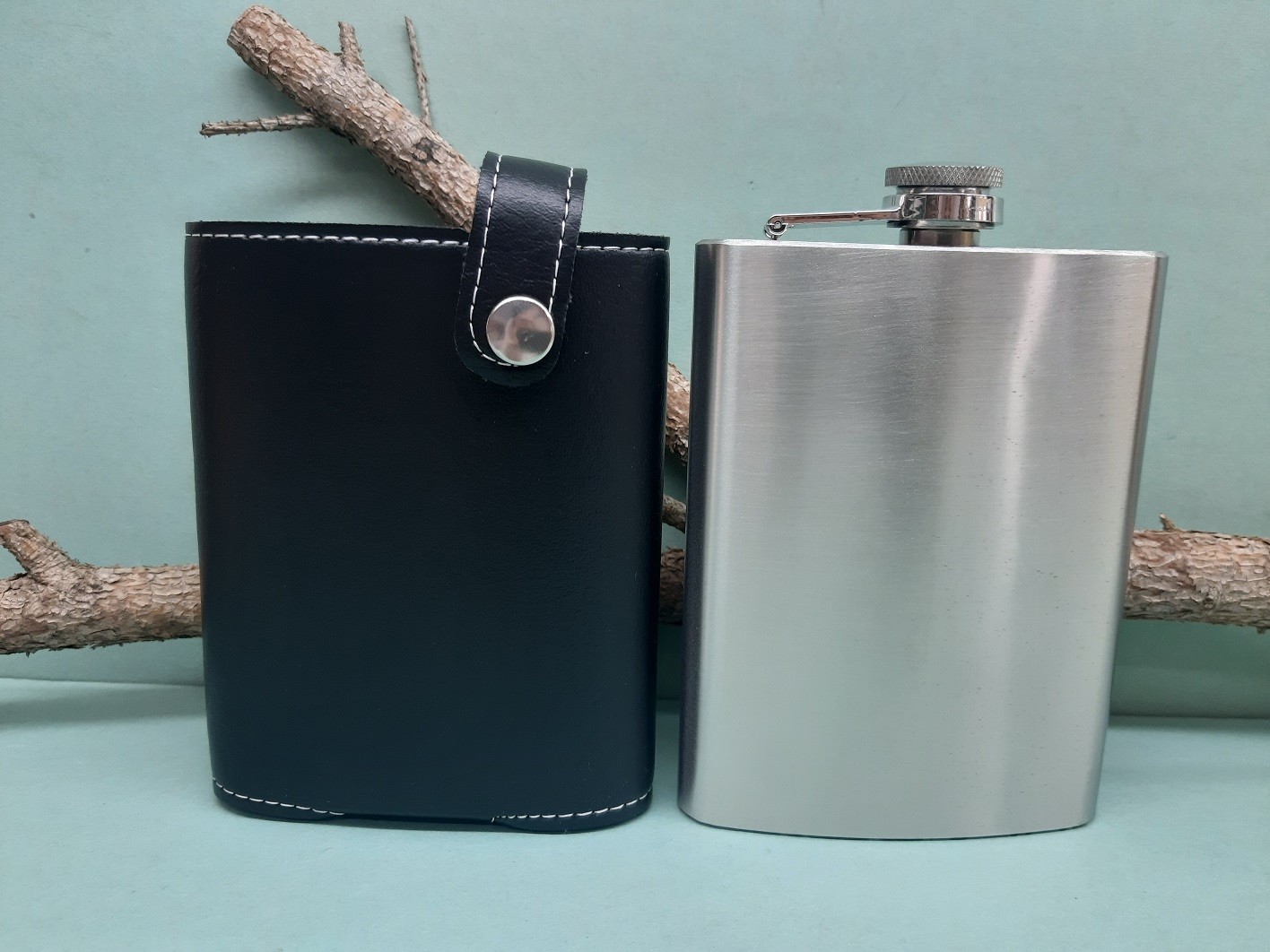 Nerezová ploskačka s objemom 210 ml s pevným uzáverom na krátkodobý prenos alkoholických nápojov. Obsahuje čierne kožené puzdro. Ideálny darček pre milovníkov prírody, ktorí majú radi svoj obľúbený nápoj stále pri sebe.