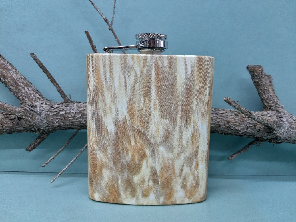 Mramorová nerezová ploskačka s objemom 200ml. Uzáver je upevnený proti strate a umožňuje prenos alkoholických nápojov. Ploskačka je vhodná ako dekorácia alebo praktický darček pre tých, ktorí majú radi svoj obľúbený nápoj stále pri sebe.