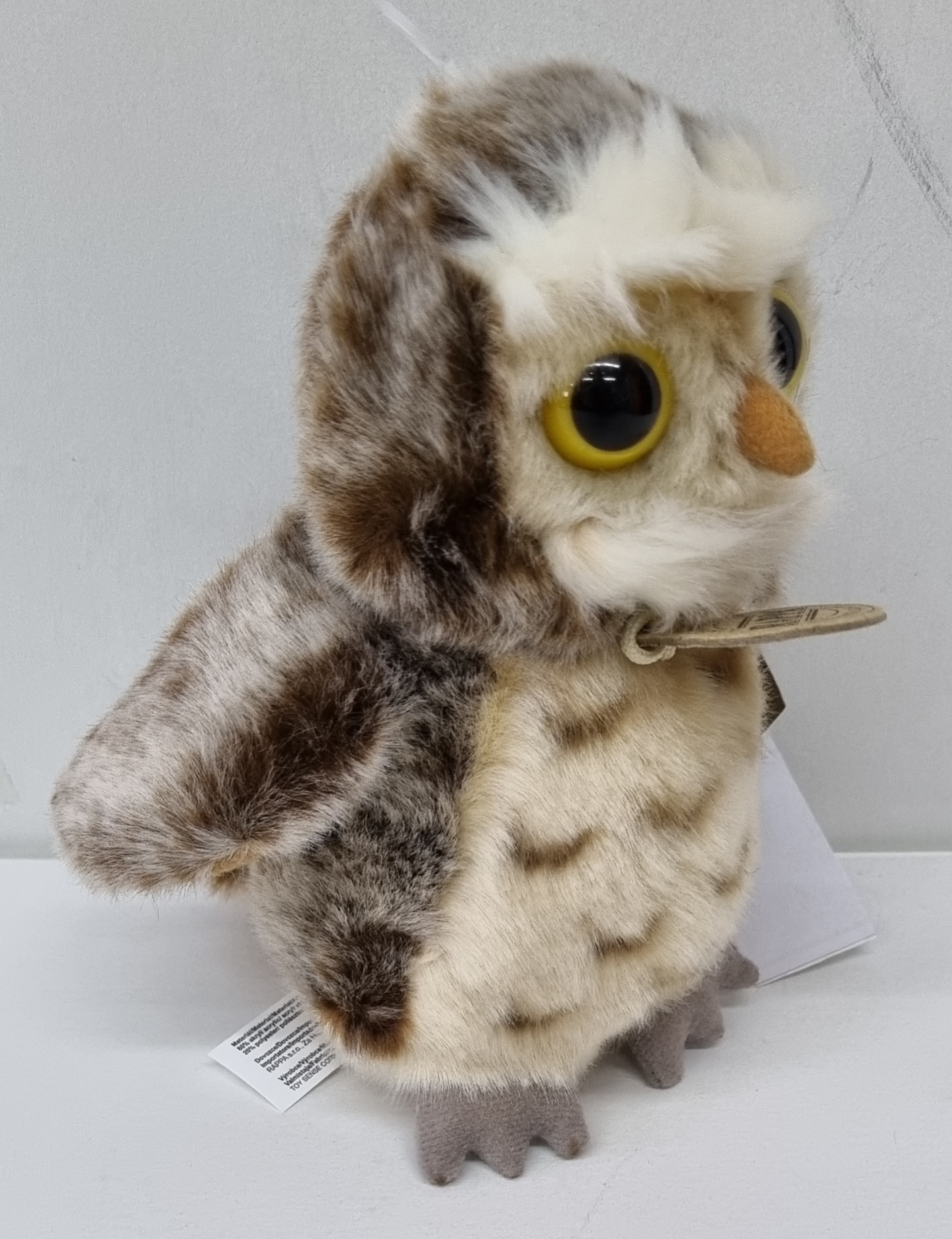 Krásna eco-friendly plyšová sova vo veľkosti 16 cm je vyrobená z vysoko kvalitného plyšu. Výplň plyšovej hračky je vyrobená z recyklovaných PET fliaš. Tento materiál je úplne bezpečný, na dotyk nerozoznateľný od štandardnej výplne a plne atestovaný pre bezpečnosť aj tých najmenších.
