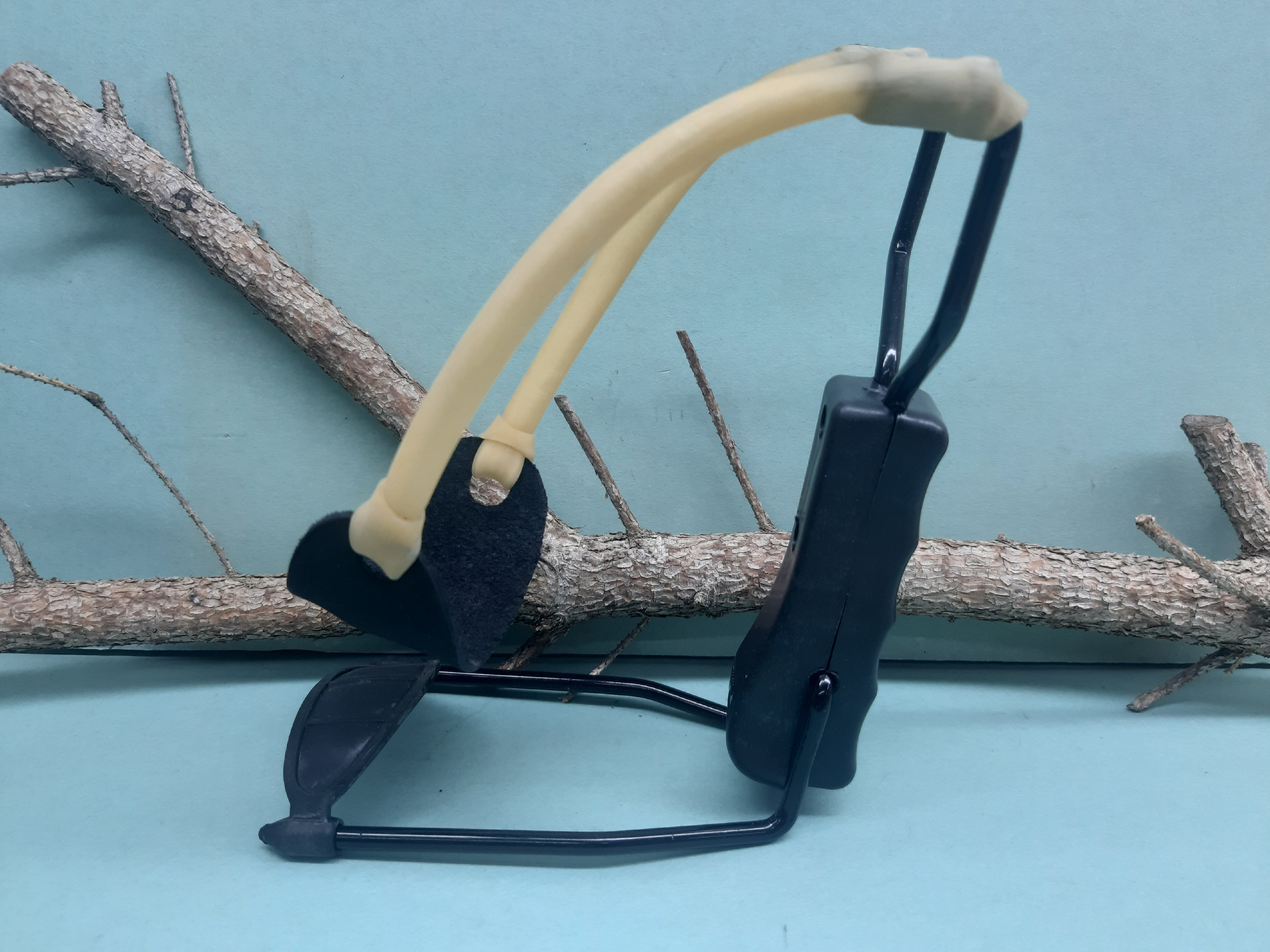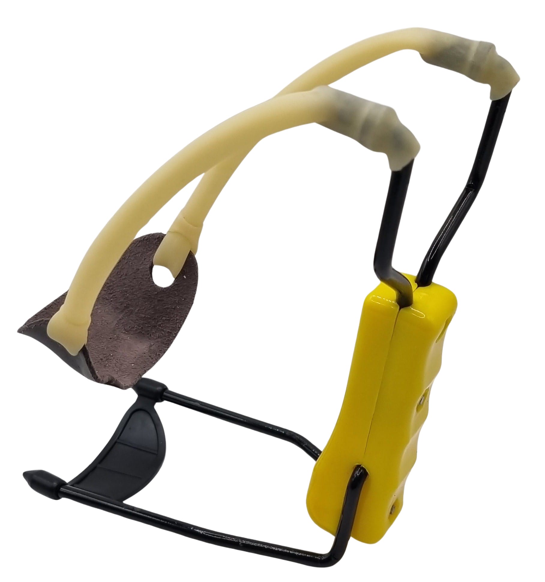 Prak s opierkou pre lepšiu stabilitu. Oceľový prak má silnú gumu a plastovú rukoväť. Prak možno využiť pre športovú terčovú streľbu alebo na deštrukčnú streľbu do plechoviek či fliaš.