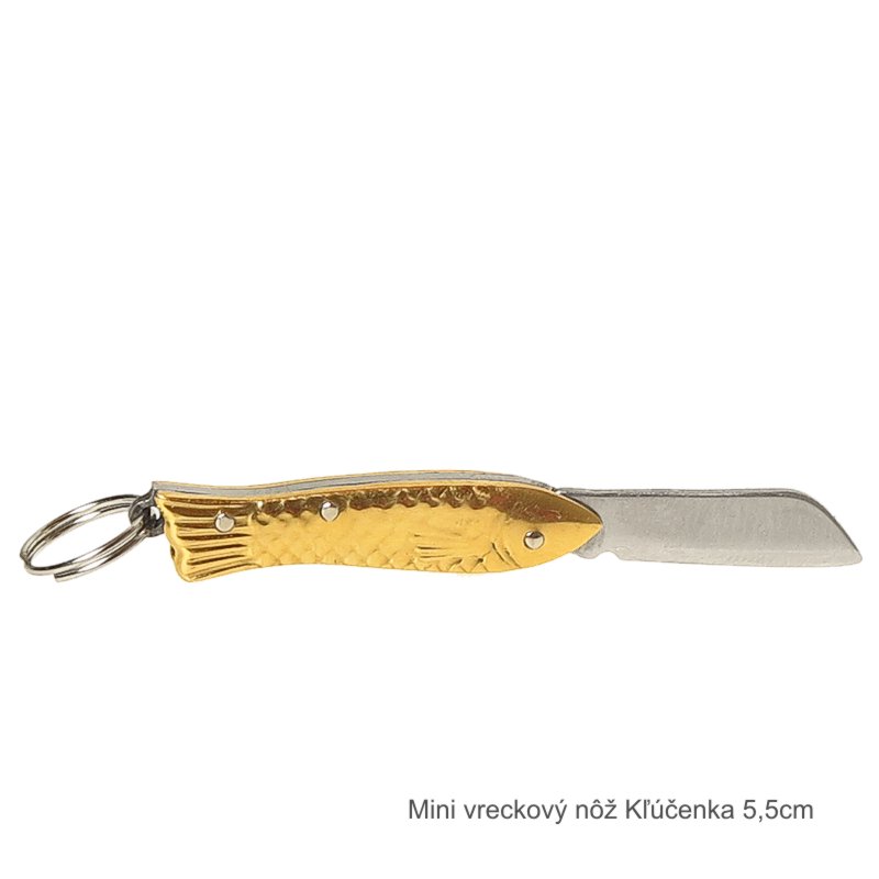 Vreckový nôž rybička ako praktická malá kľúčenka. Malý šikovný nožík v tvare rybičky ktorý budete mať stále po ruke vám môže častokrát uľahčiť váš každodenný život. Tento nožík je veľmi obľúbený ako malý darček pre známeho. Napriek tomu, že je nôž maličký urobí každému veľkú radosť. Nôž obsahuje aj zárez na čepeli pre ľahšie otváranie.