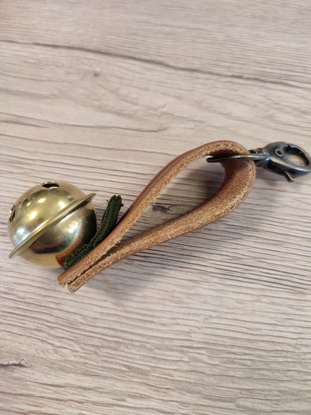 Mosadzná rolnička na medvede s koženým úchytom s karabínou. Predstavuje kvalitnú ochranu počas vášho pobytu v prírode, vďaka výraznému a prenikavému zvuku, ktorý efektívne upovedomí medveďa a inú zver o vašej prítomnosti v prírode.